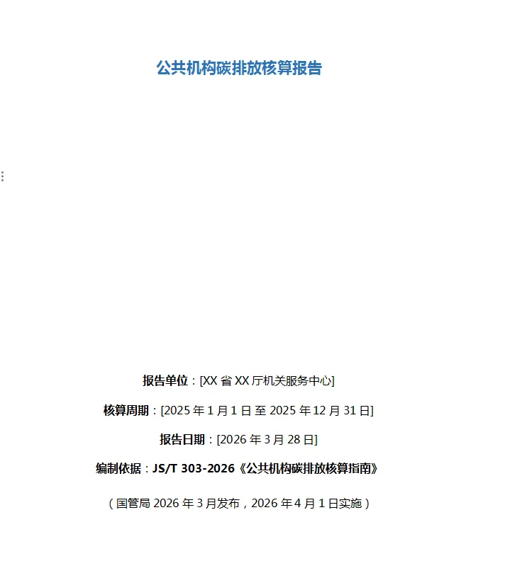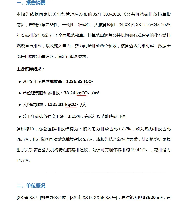 公共机构碳排放核算报告WPS版如下部分截图,文末附有下载完整WPS文件路径。