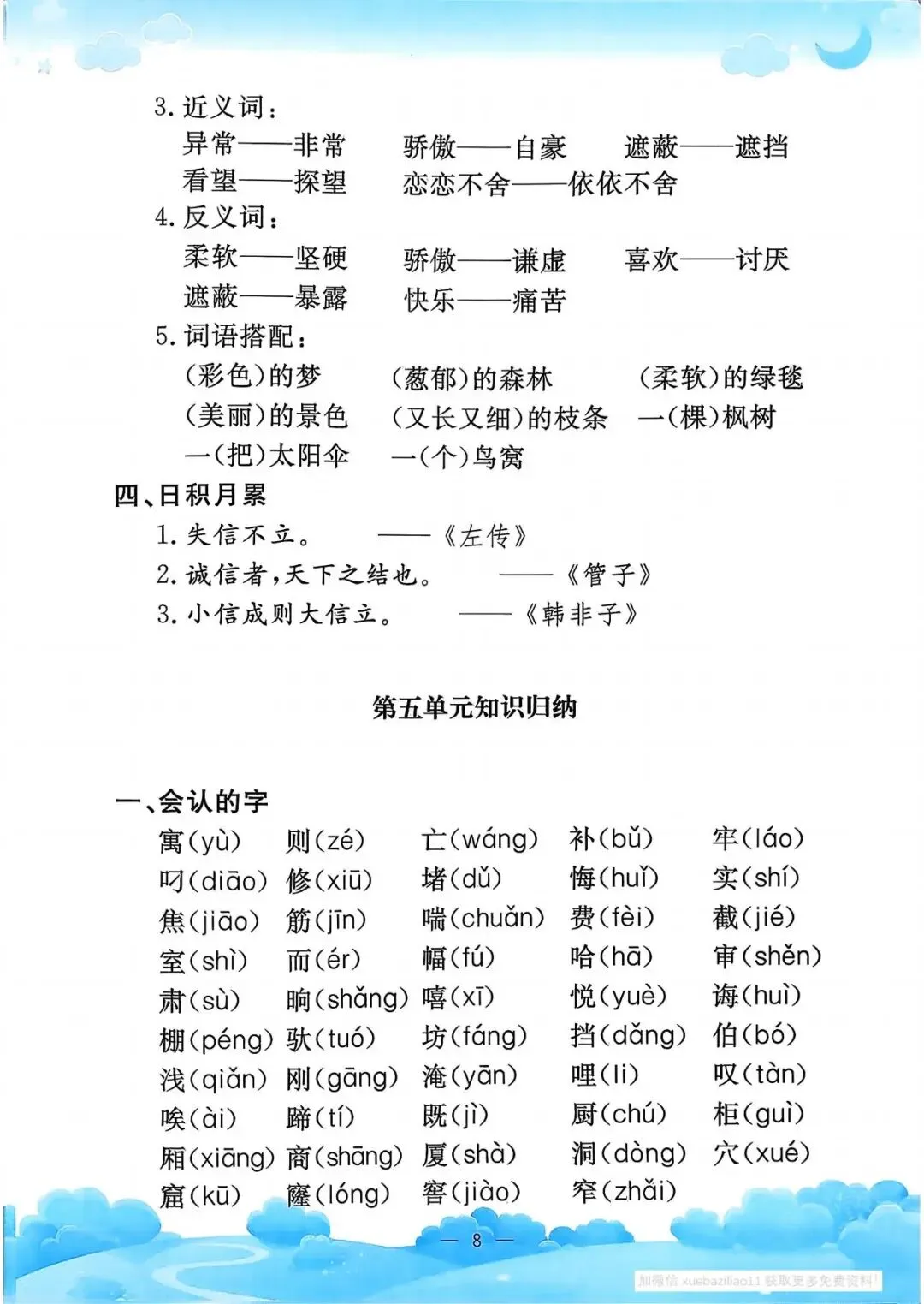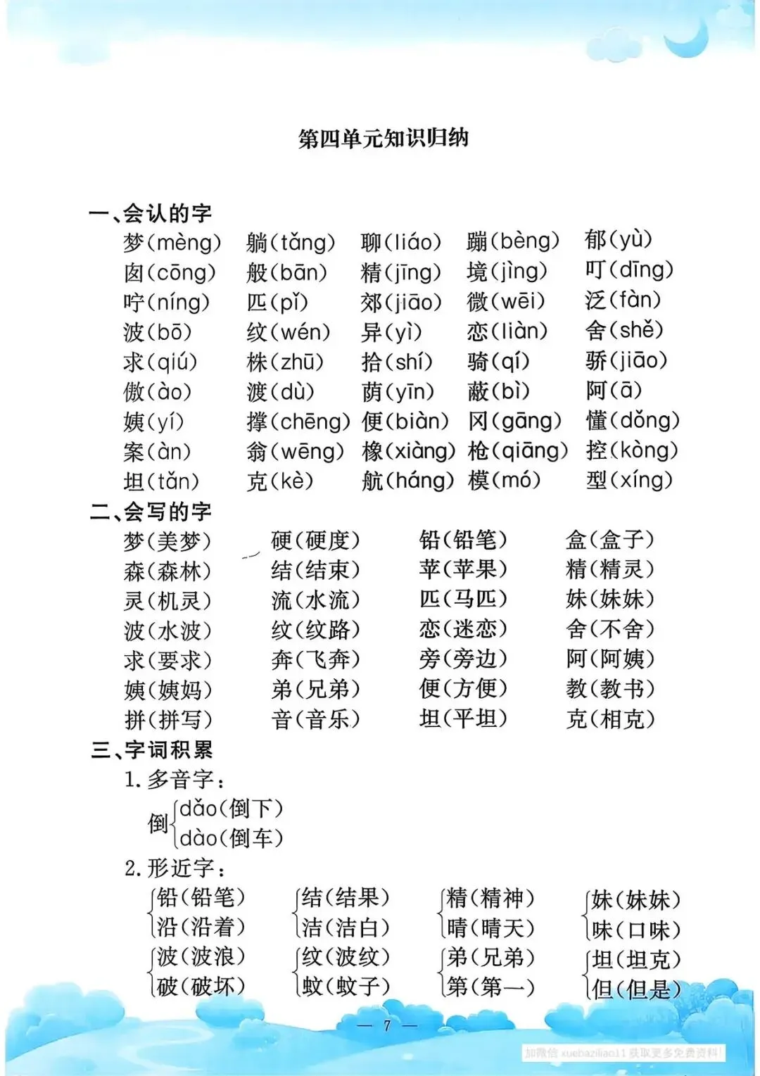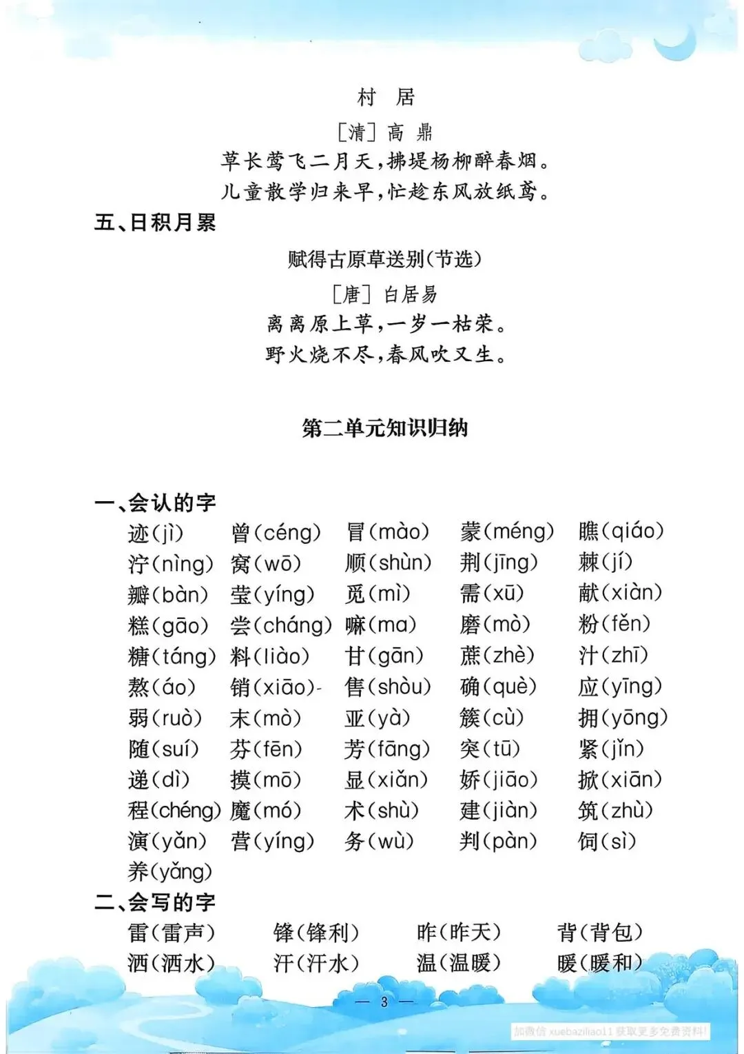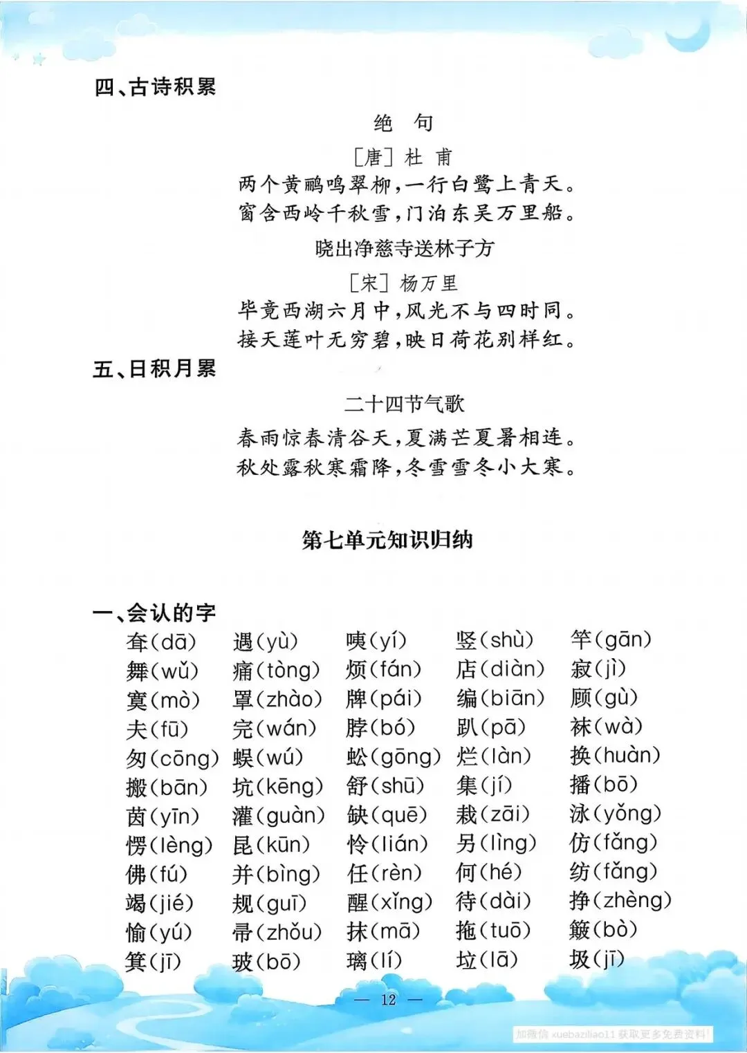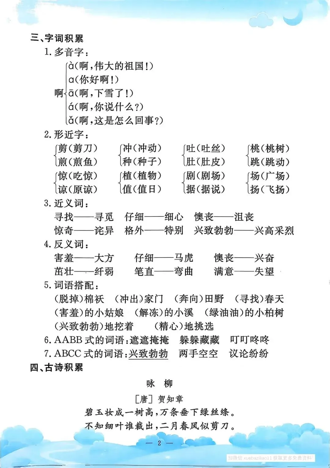 二年级下册语文《单元知识梳理》(领高清PDF打印版)
