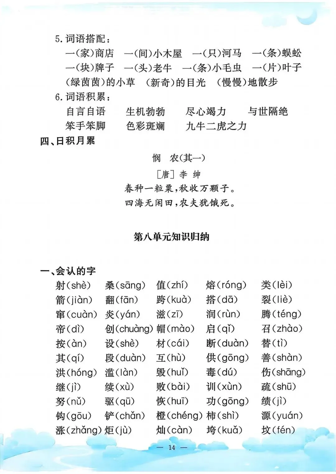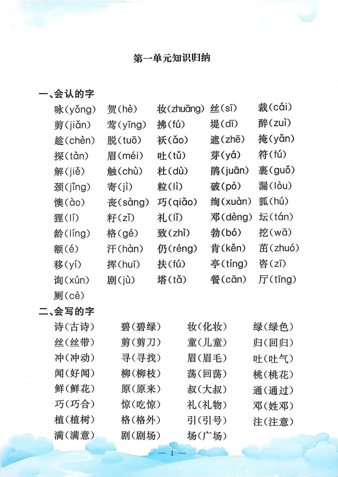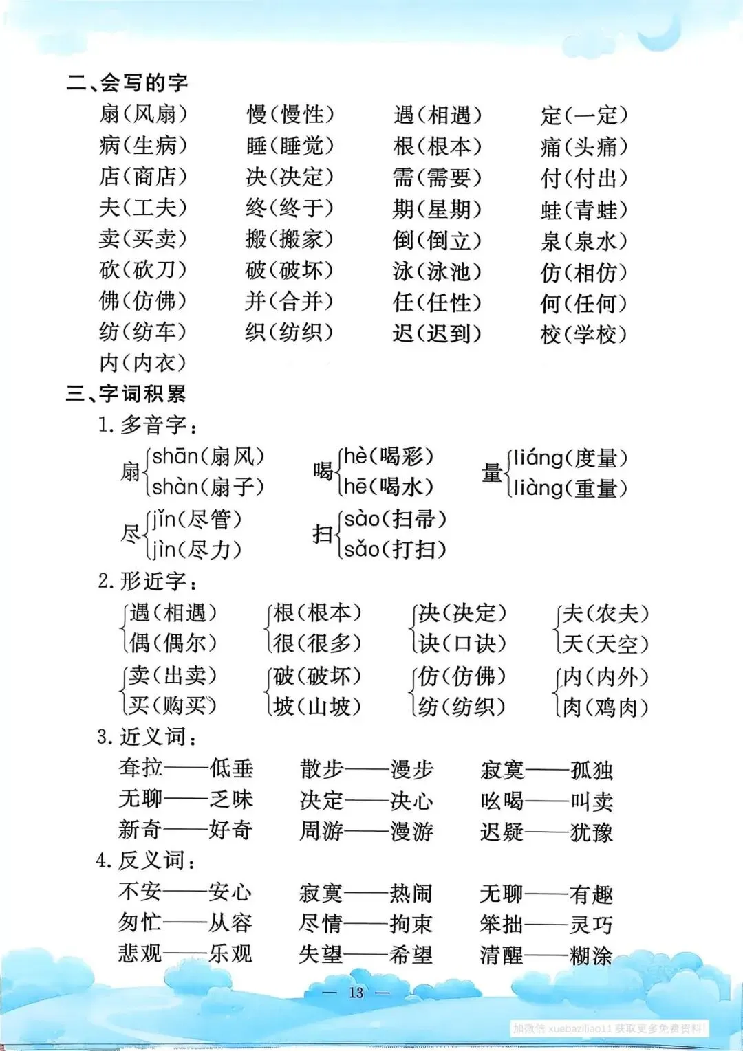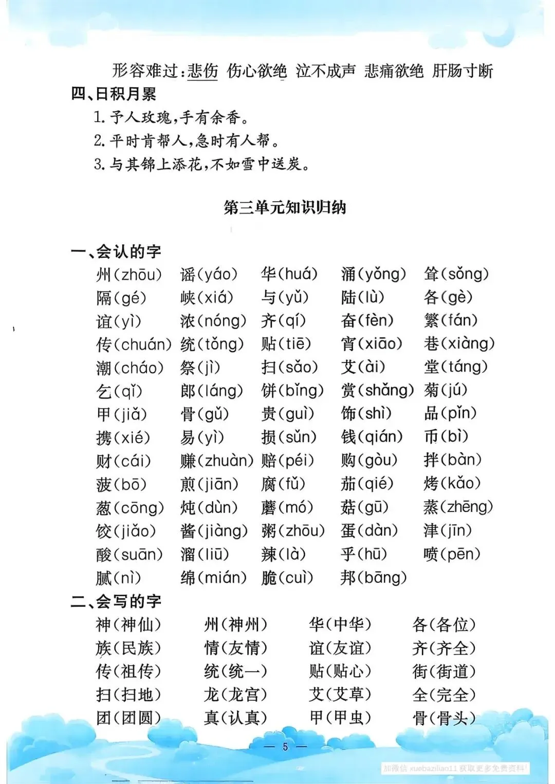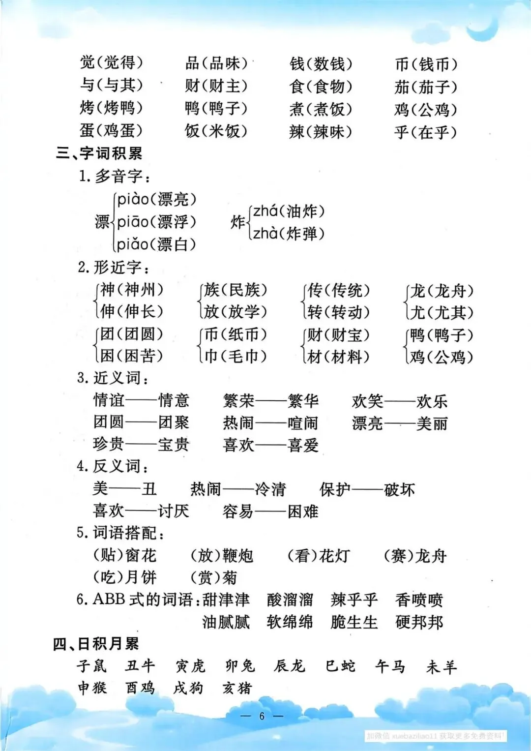 二年级下册语文《单元知识梳理》(领高清PDF打印版)
