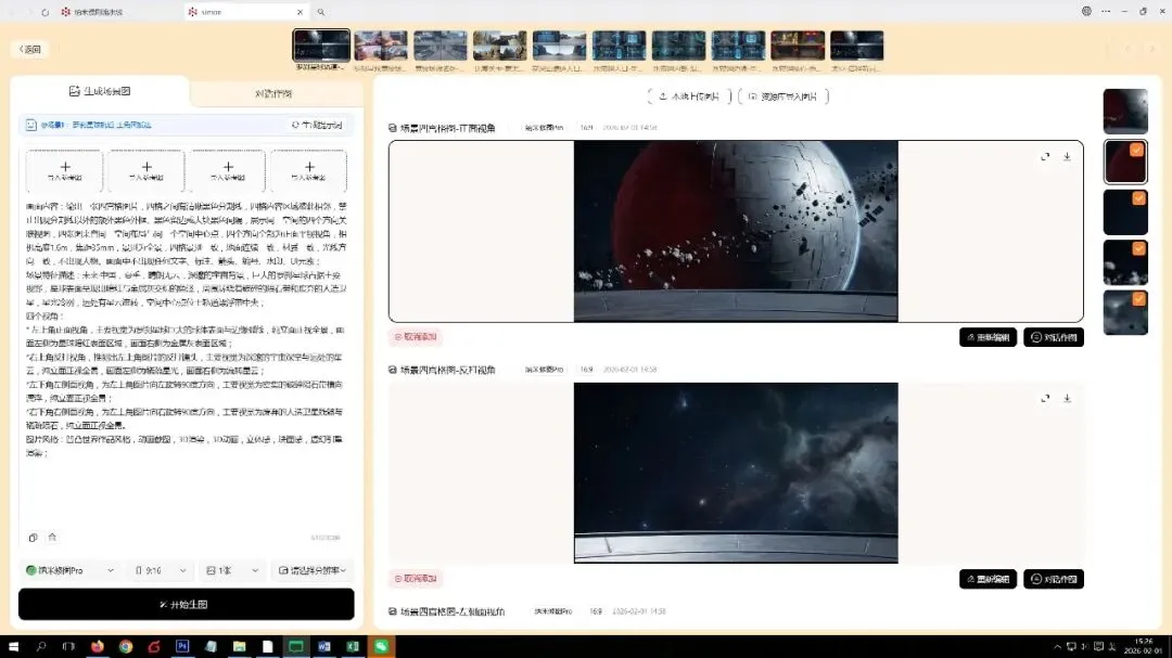 生成场景图,这里感觉真心还是不错的,场景图生成了多个角度,对于后期生成视频帮助就比较大!