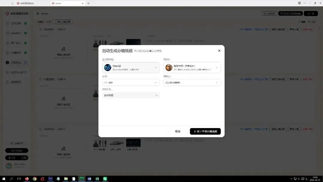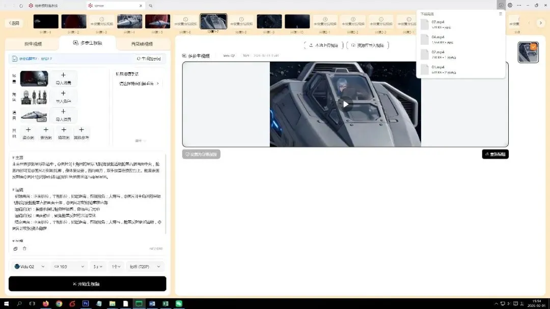 分镜脚本生成完之后,选择需要的模型,后续来生成分镜的视频!