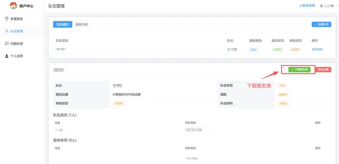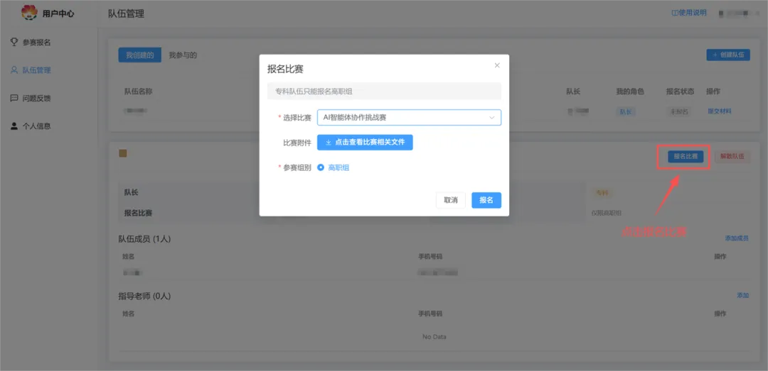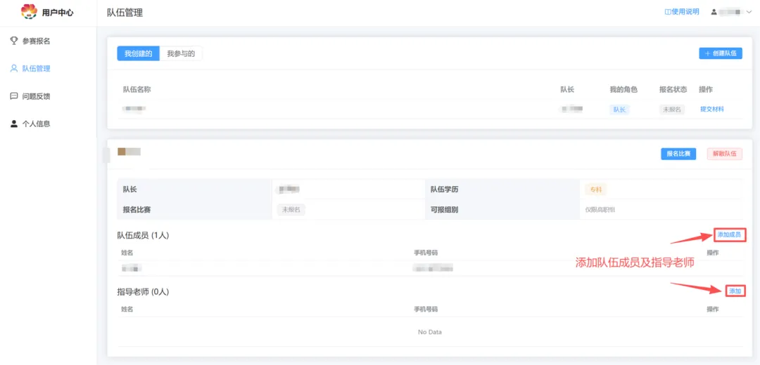 5、添加队伍成员及指导老师