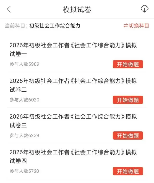 备考必刷!2026社会工作者考试题库app(历年真题+押题密卷+详细解析+可打印)
