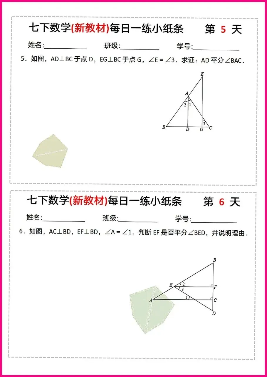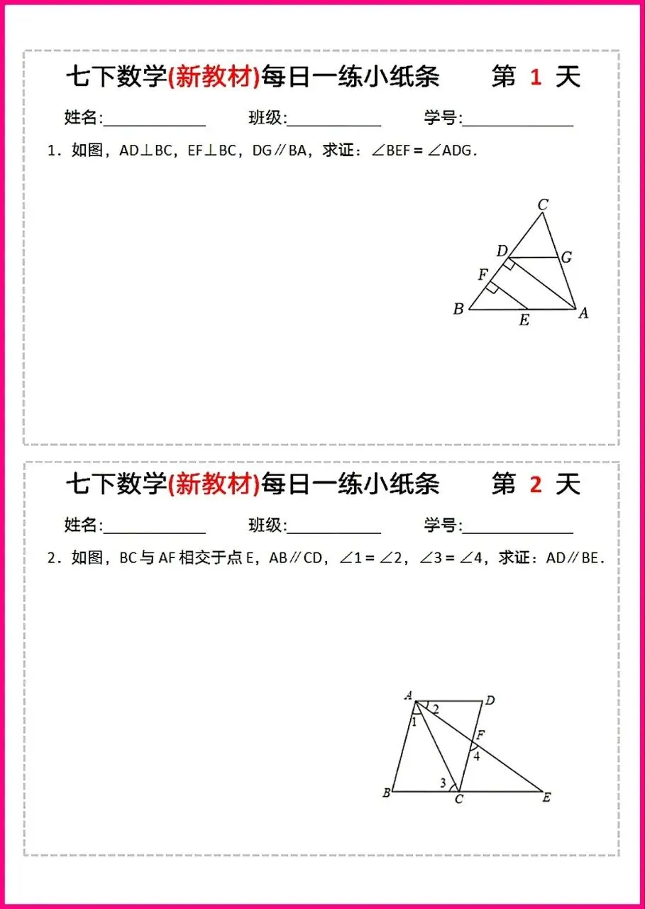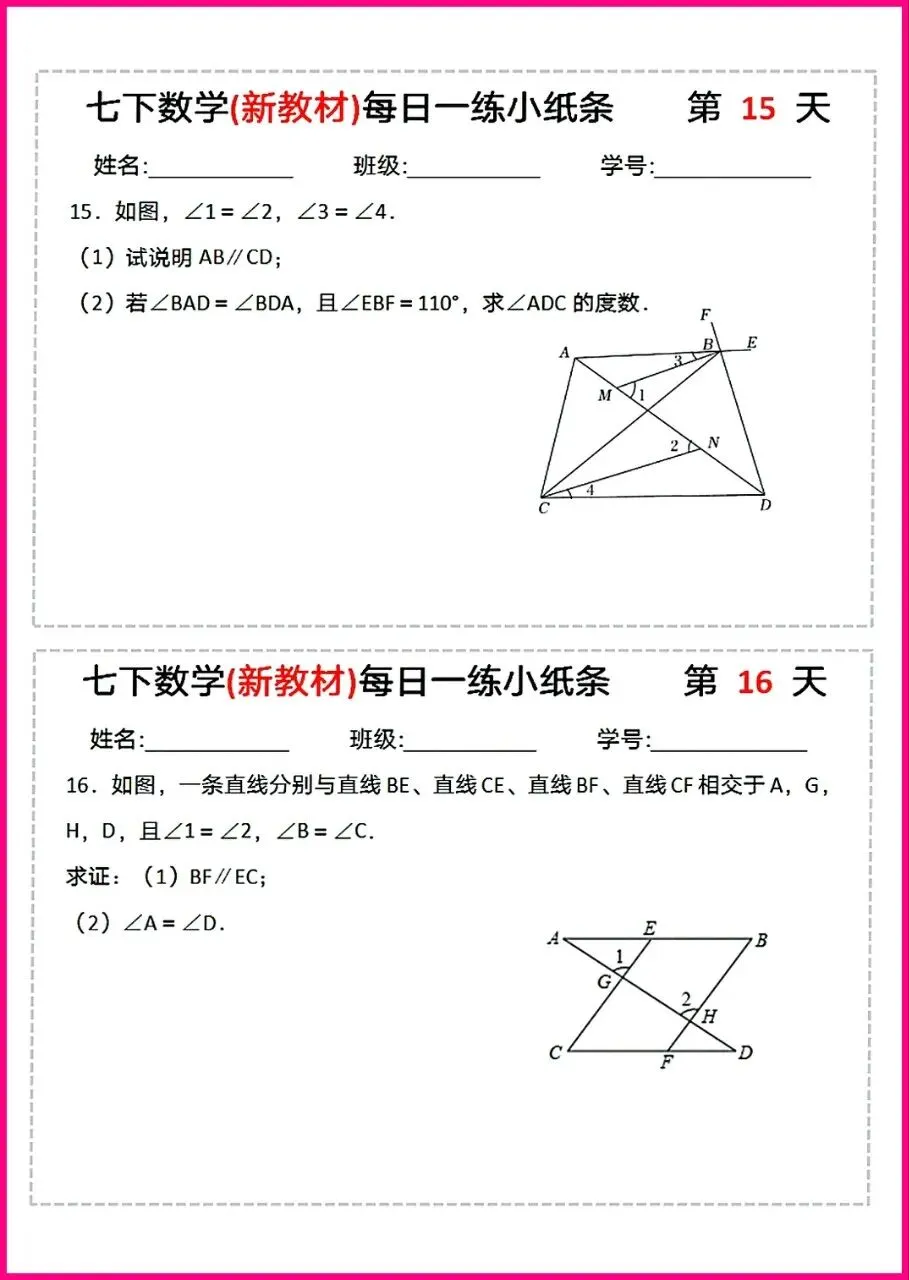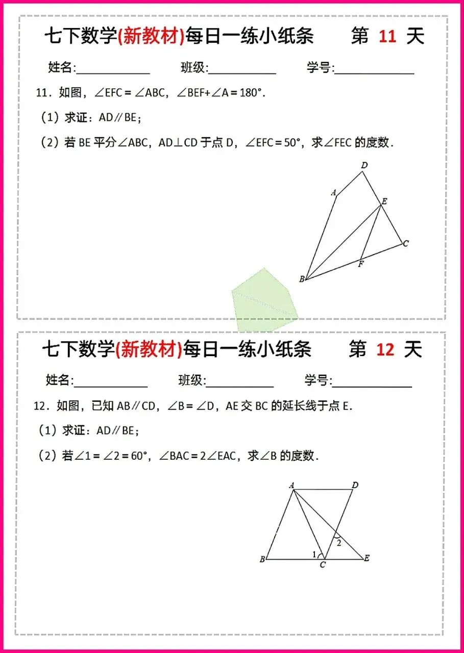 【26版新教材】七年级下册数学平行线专项每日练习与巩固,电子版可下载打印!