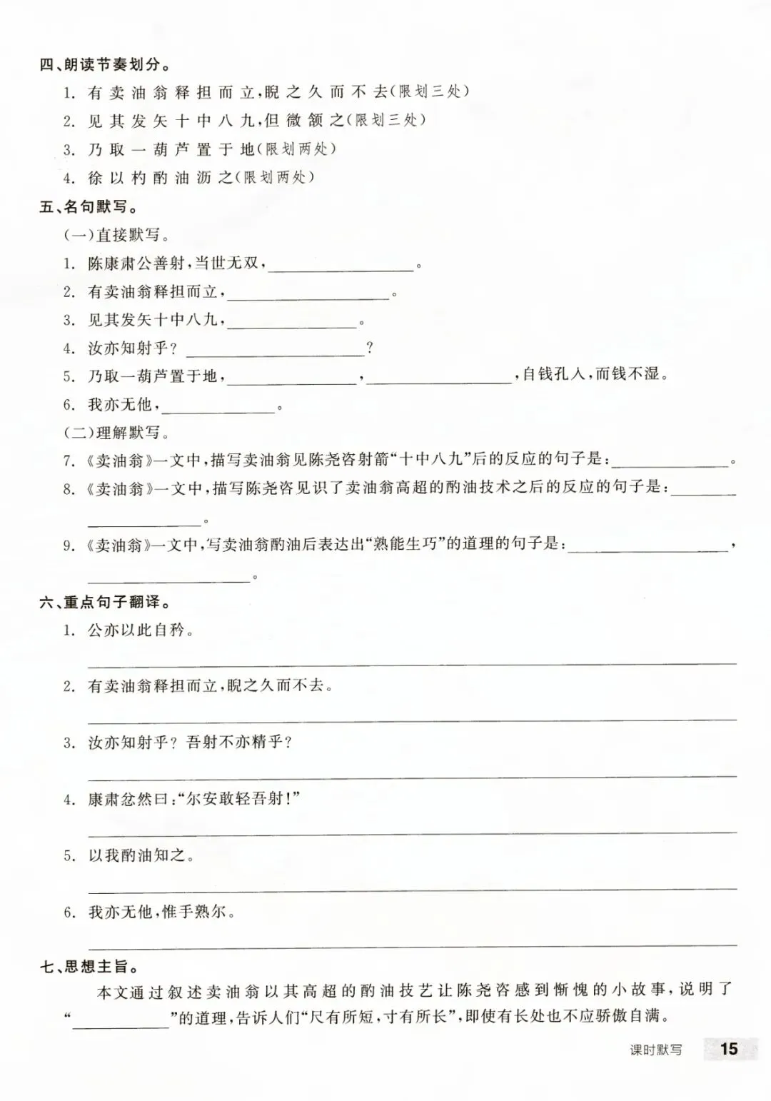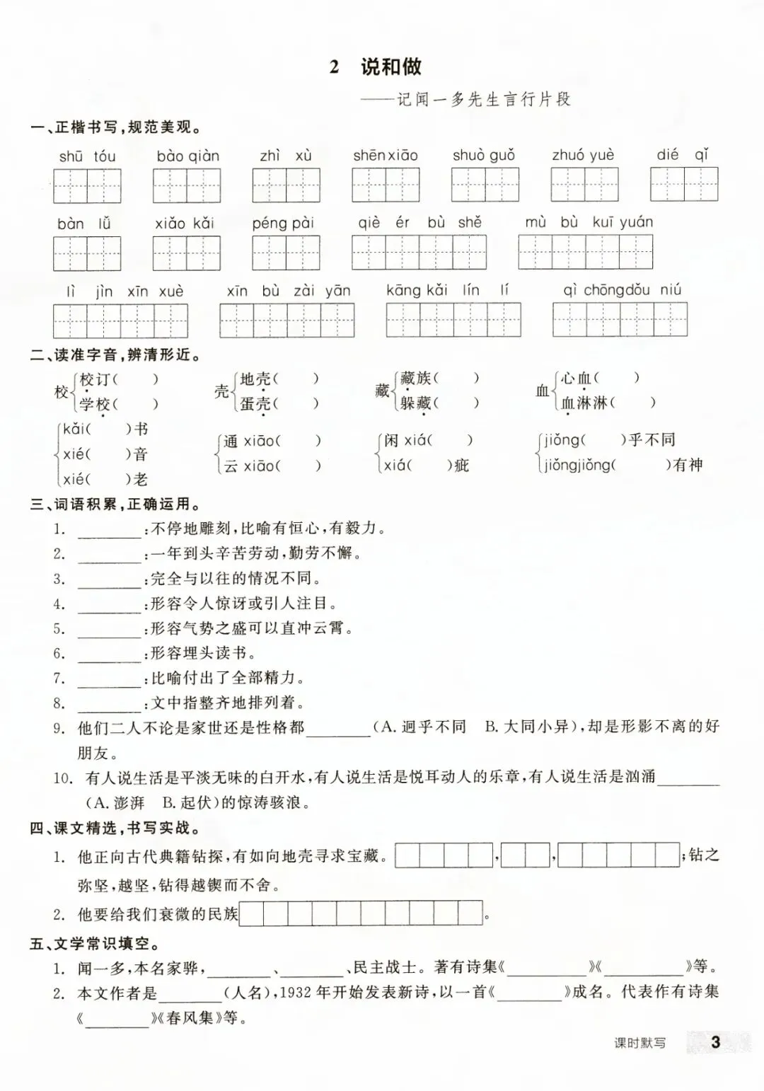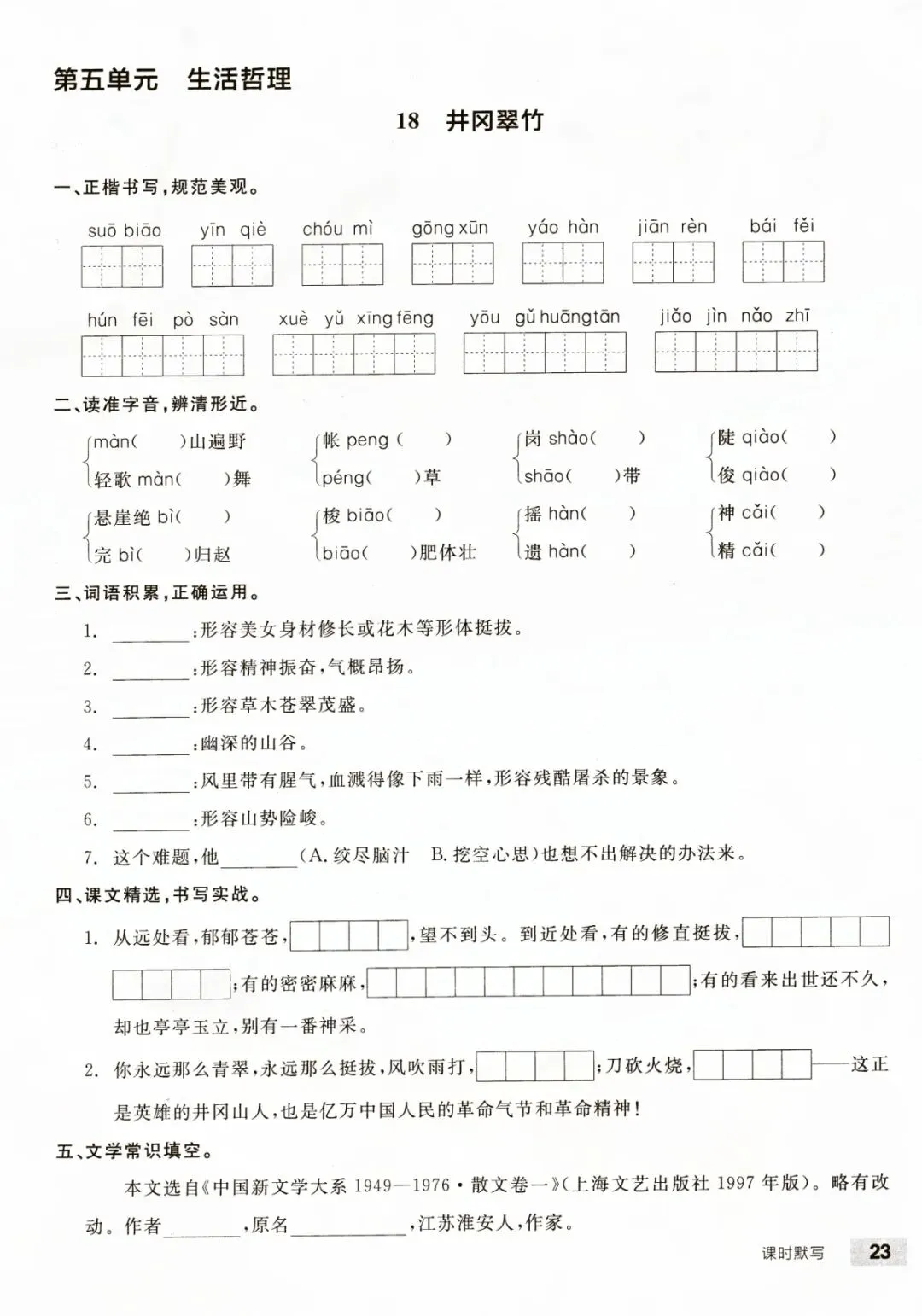 七年级下册语文每课课时默写含答案 电子版可打印