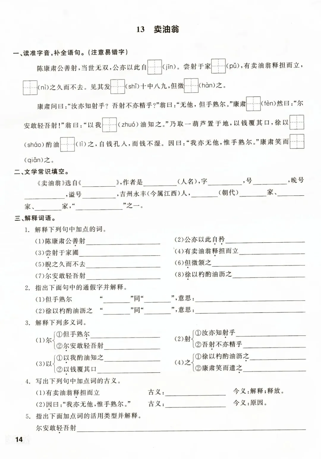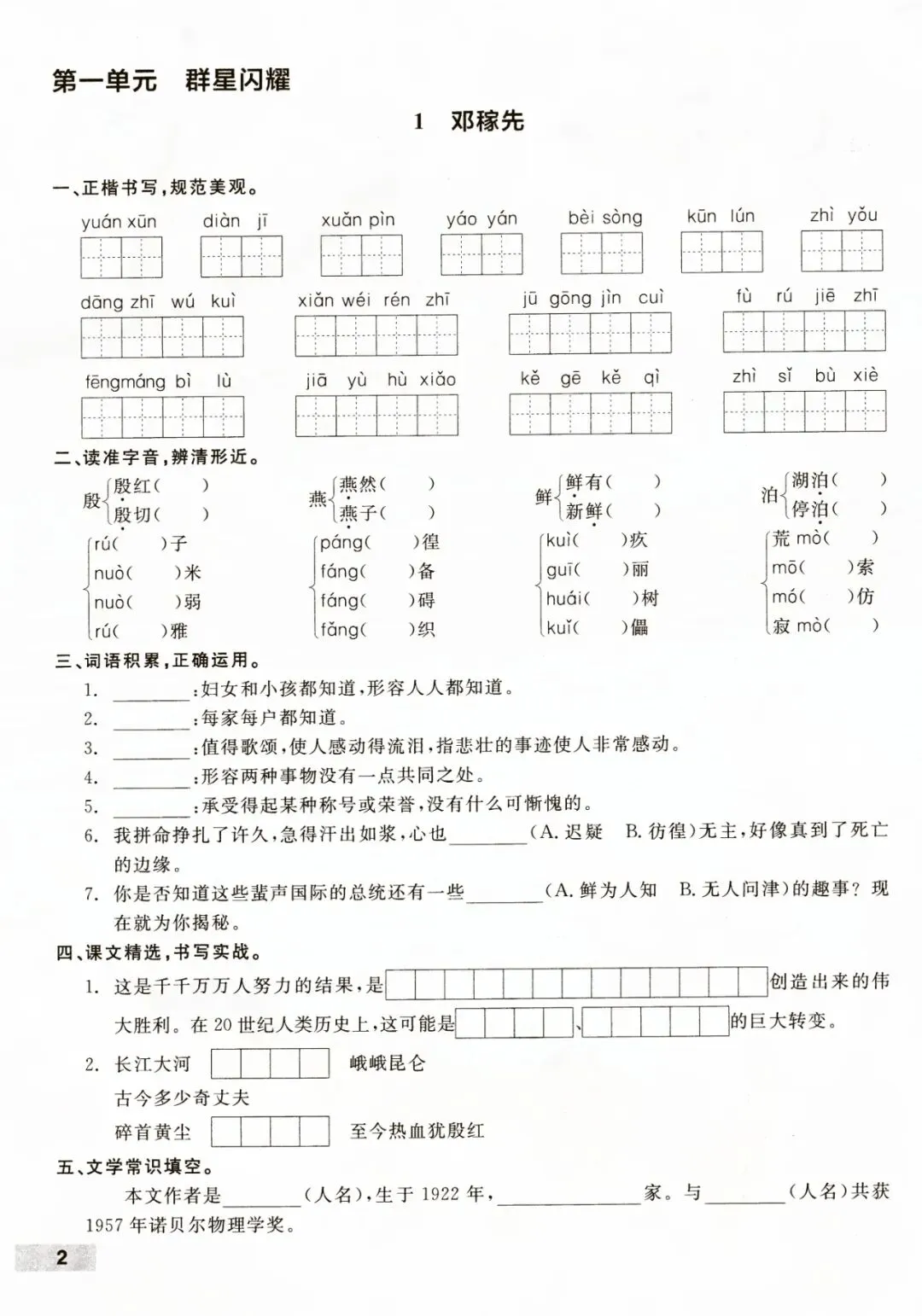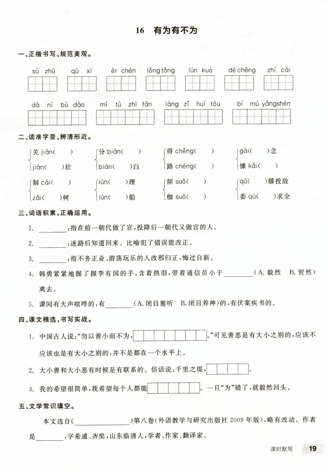七年级下册语文每课课时默写含答案 电子版可打印