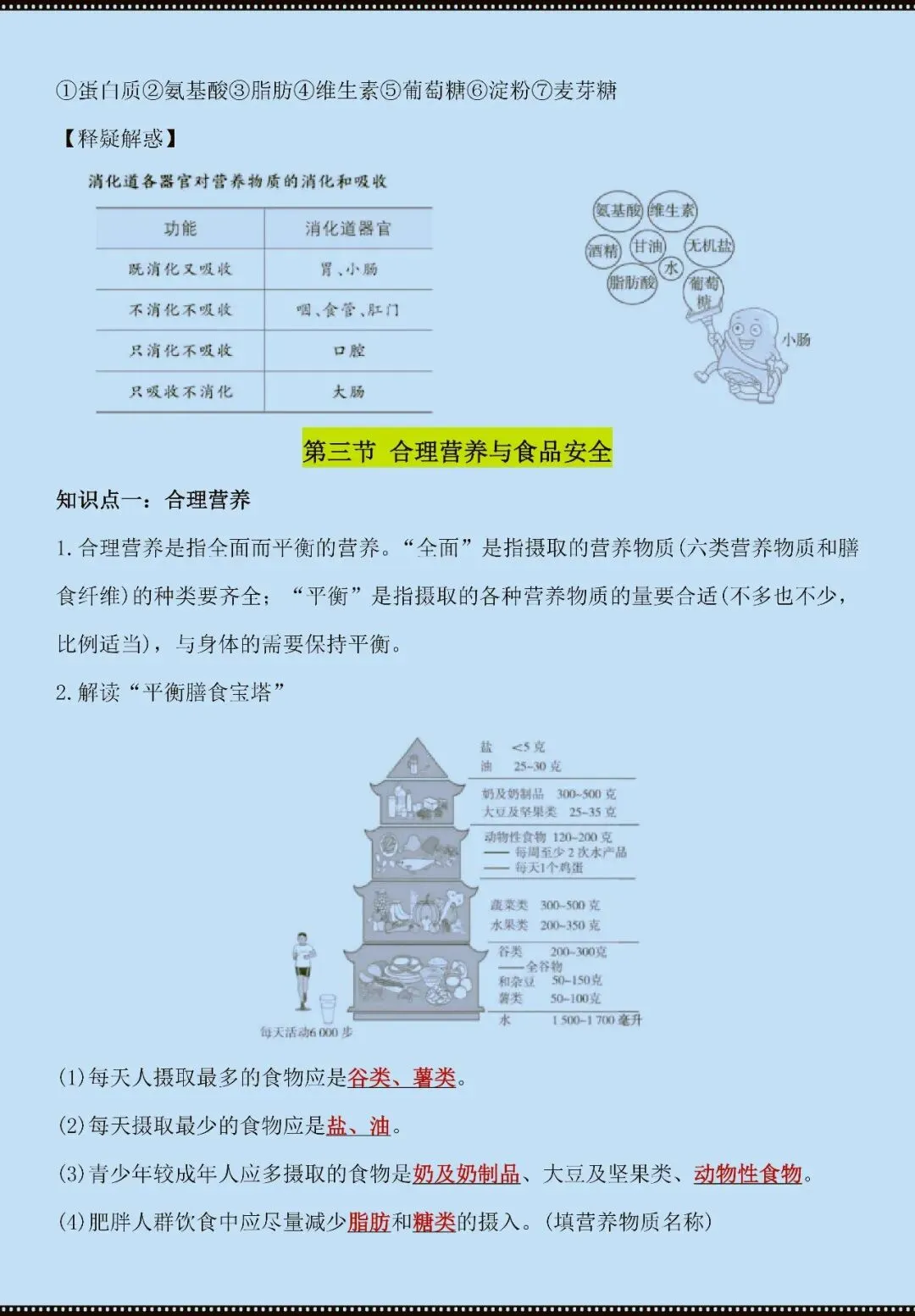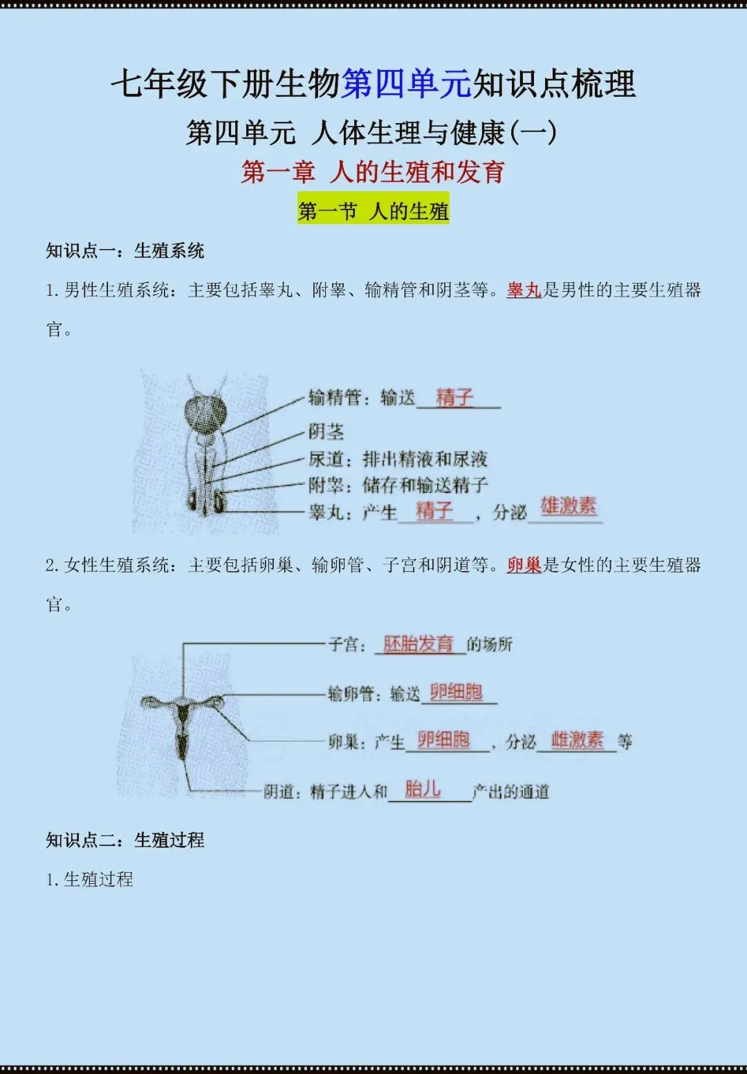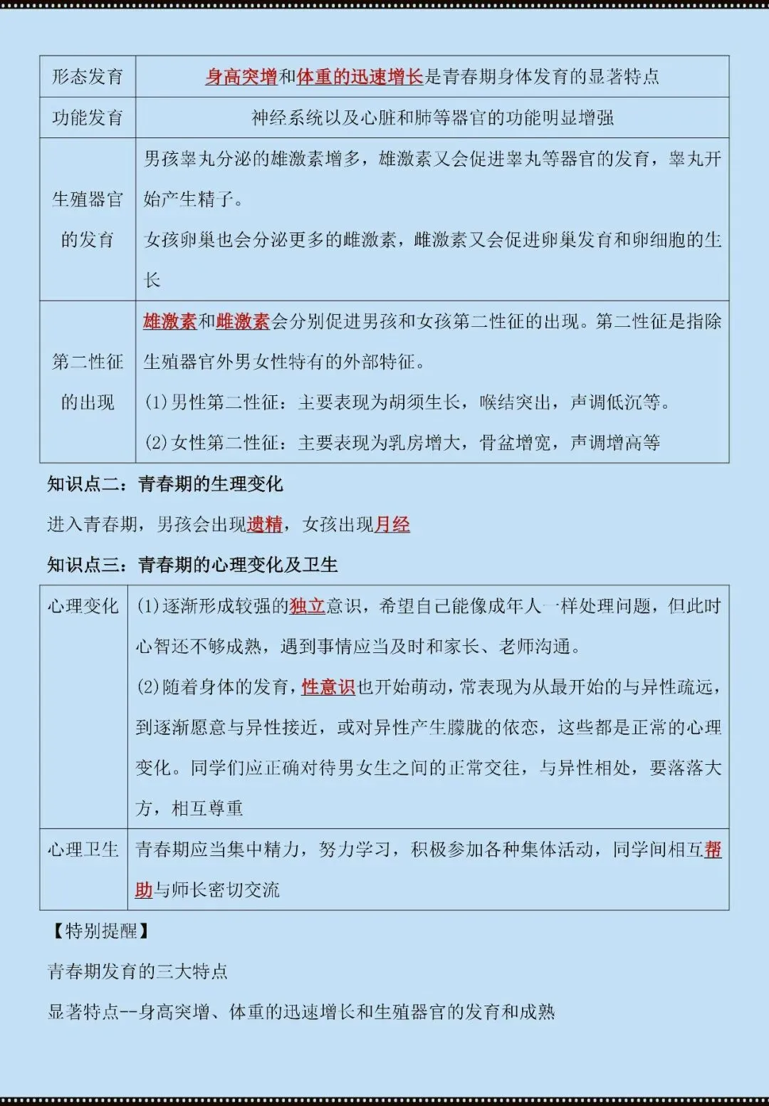 今天老师给大家整理了:七年级下册生物核心知识点梳理(电子版可打印)