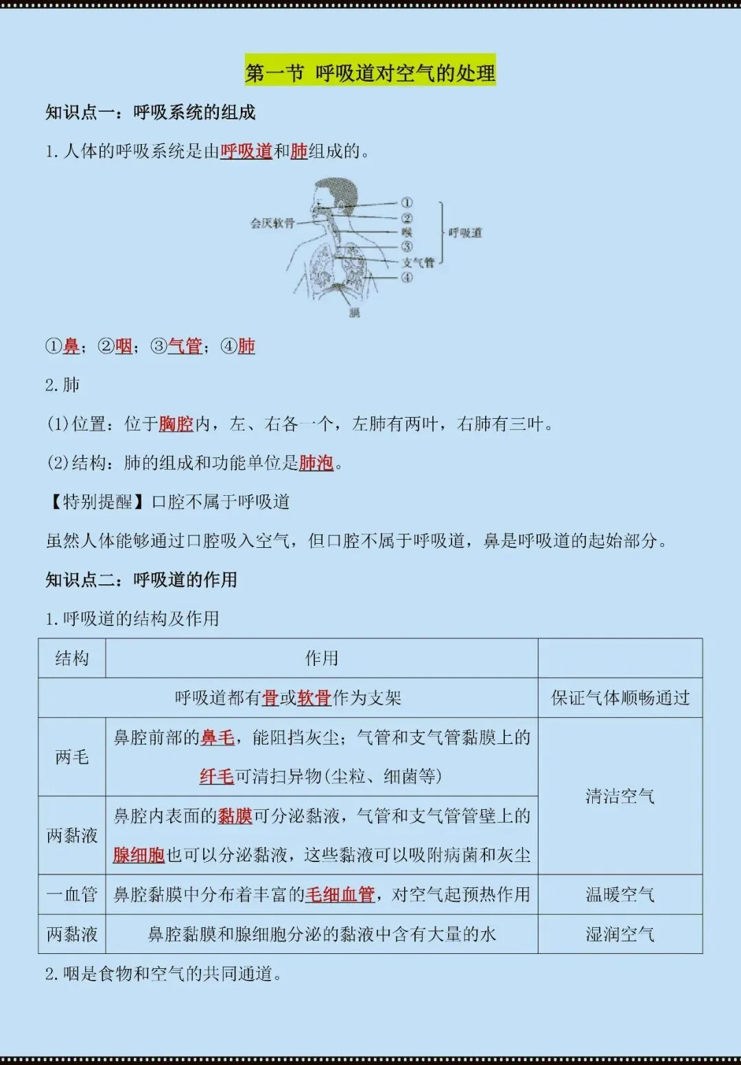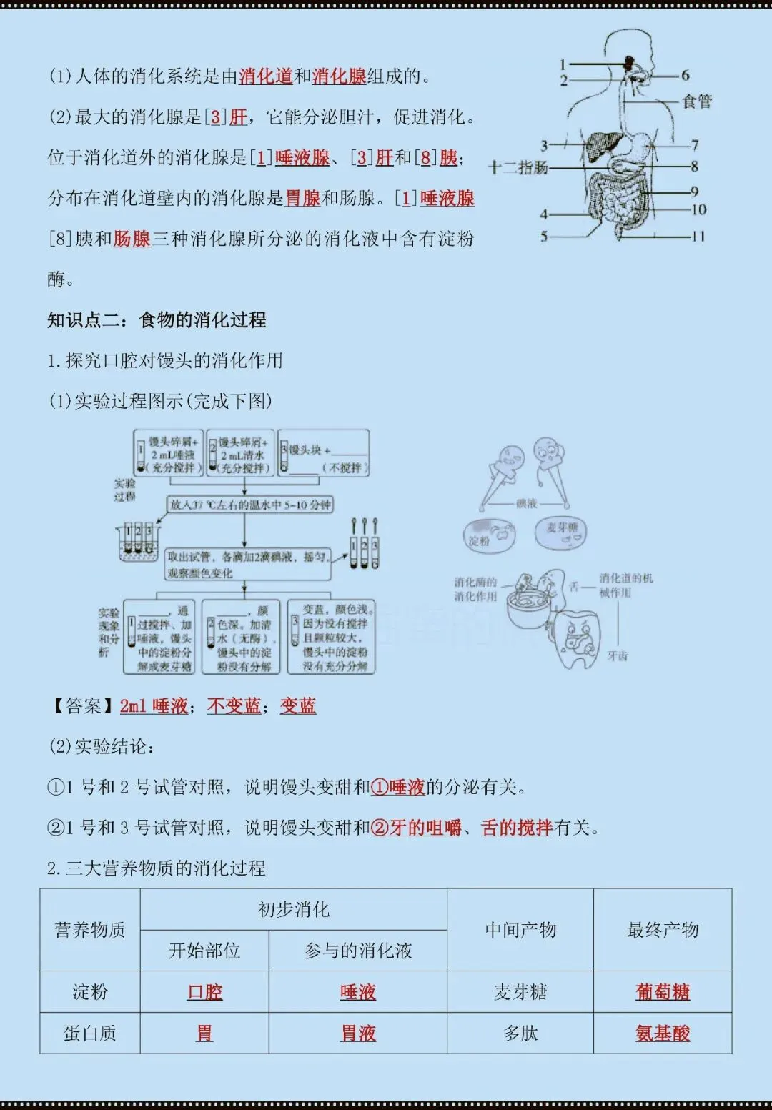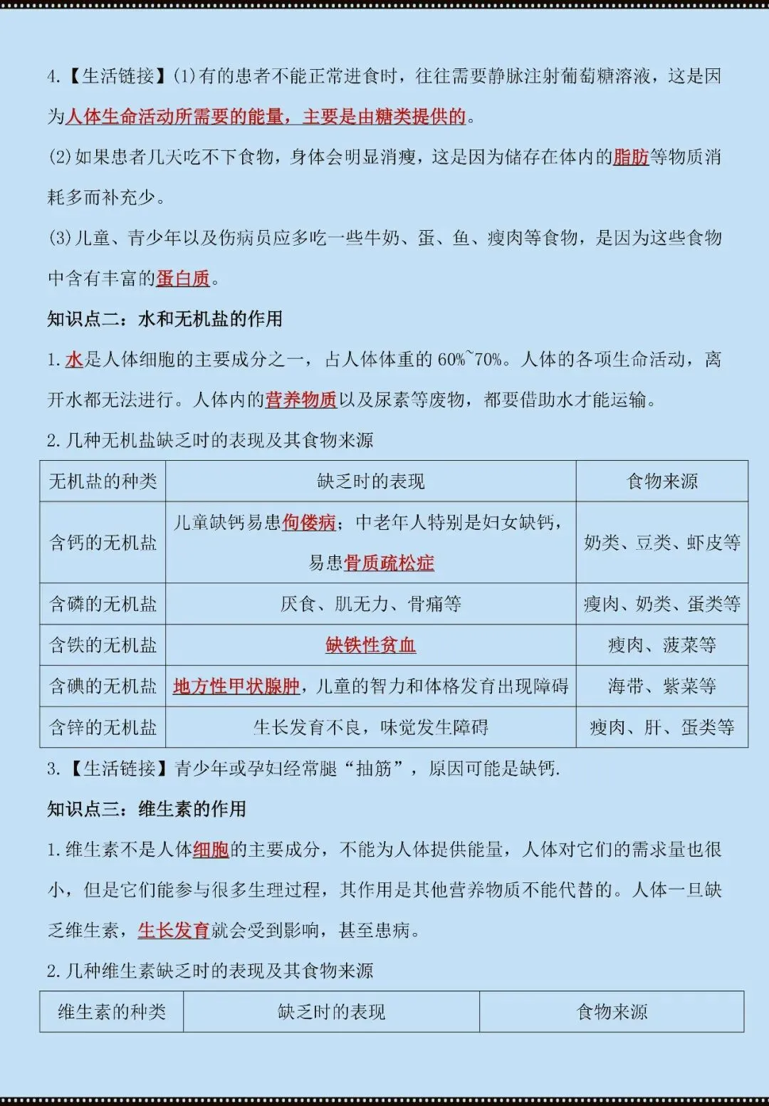 今天老师给大家整理了:七年级下册生物核心知识点梳理(电子版可打印)