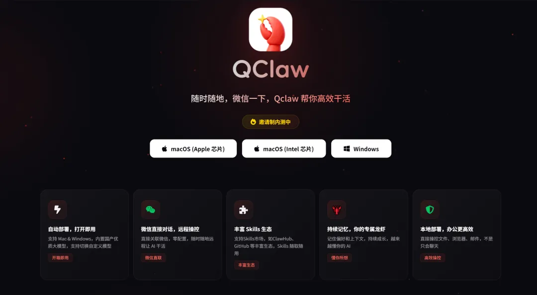 我一开始拿到Qclaw的邀请码的时候,那个时候我抱着一个虔诚的态度将Qclaw软件下载到本地。