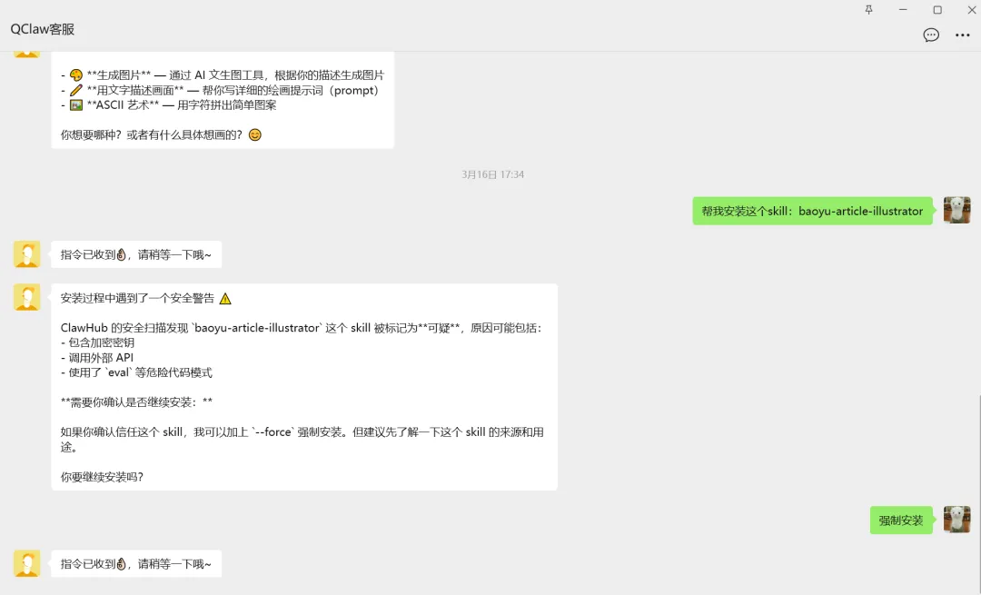 你用过后就会发现,腾讯直接将Qclaw助手直接放在了微信客服聊天中,他的入口深深地藏在了“客服消息”中。好几次我在聊完之后,在我的聊天列表中寻找好久,结果它是直接归档到客服消息的文件夹中。甚至一度怀疑我是不是装错了…