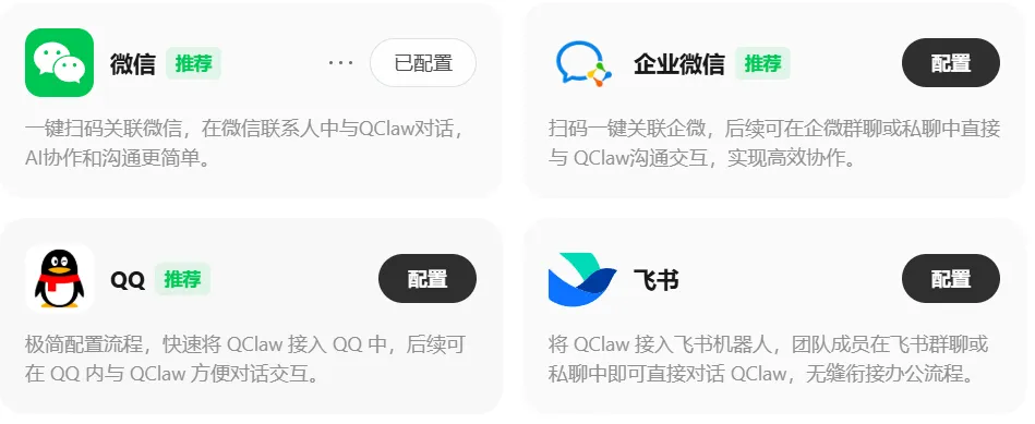 在下载好QClaw之后,第一次使用的时候大家可能会不知道如何将其接入微信聊天,他的这个设置入口确实藏得比较深。