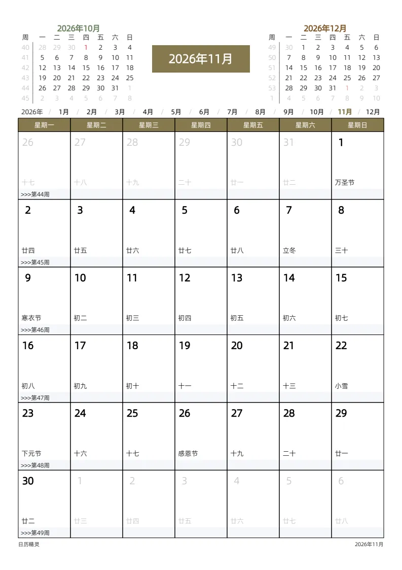 《2025+2026年日历》高清电子版模板日历月历年历工作学习目标计划手抄报(可下载,可打印,网盘下载链接)