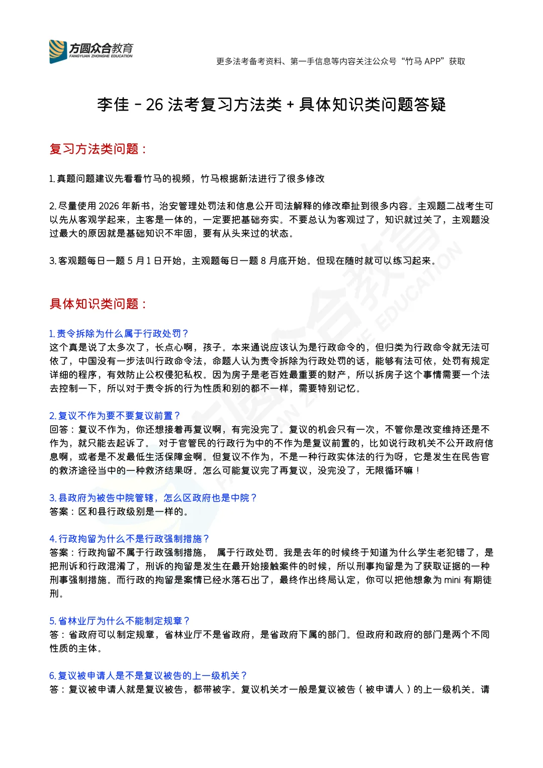 【李佳-2026法考复习方法类+具体知识类问题答疑】