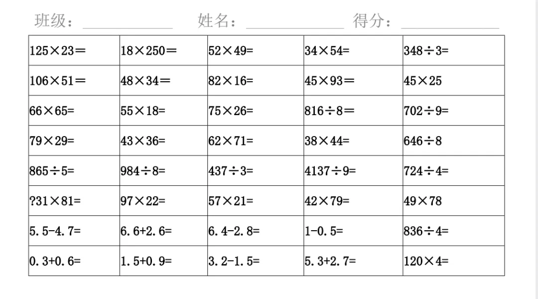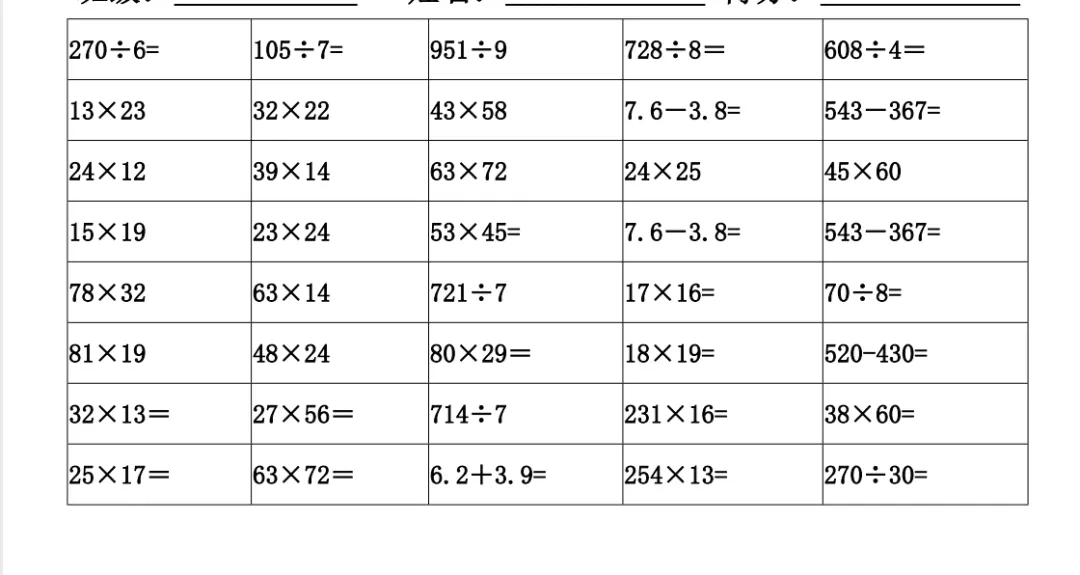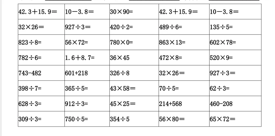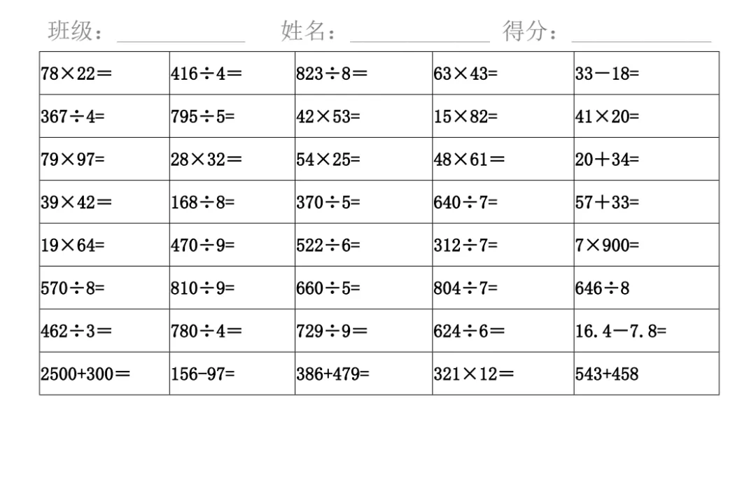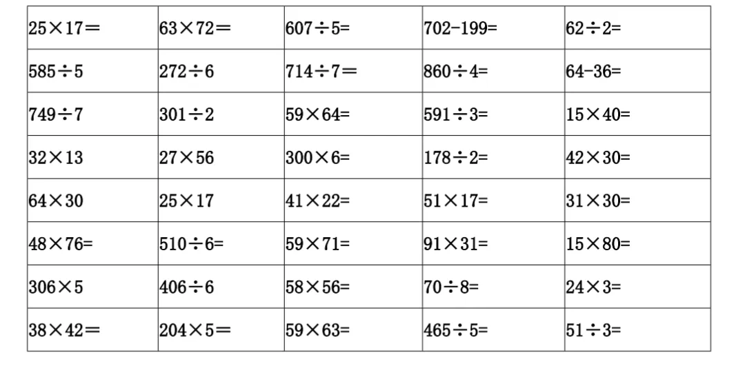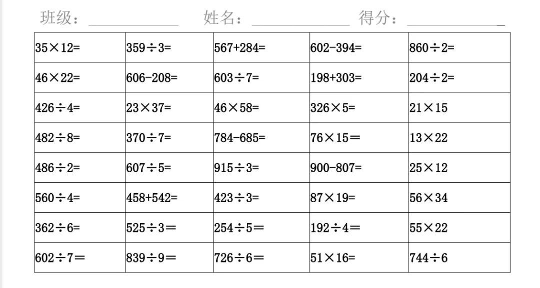 三数下,计算天天练竖式计算600道(可打印)