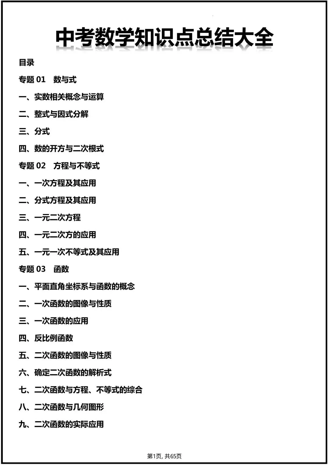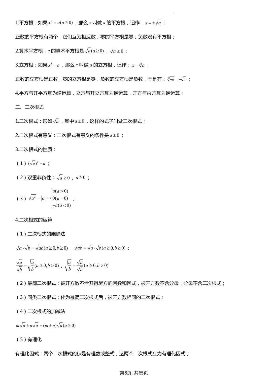 2026中考数学知识必备点总结大全(电子版可打印)