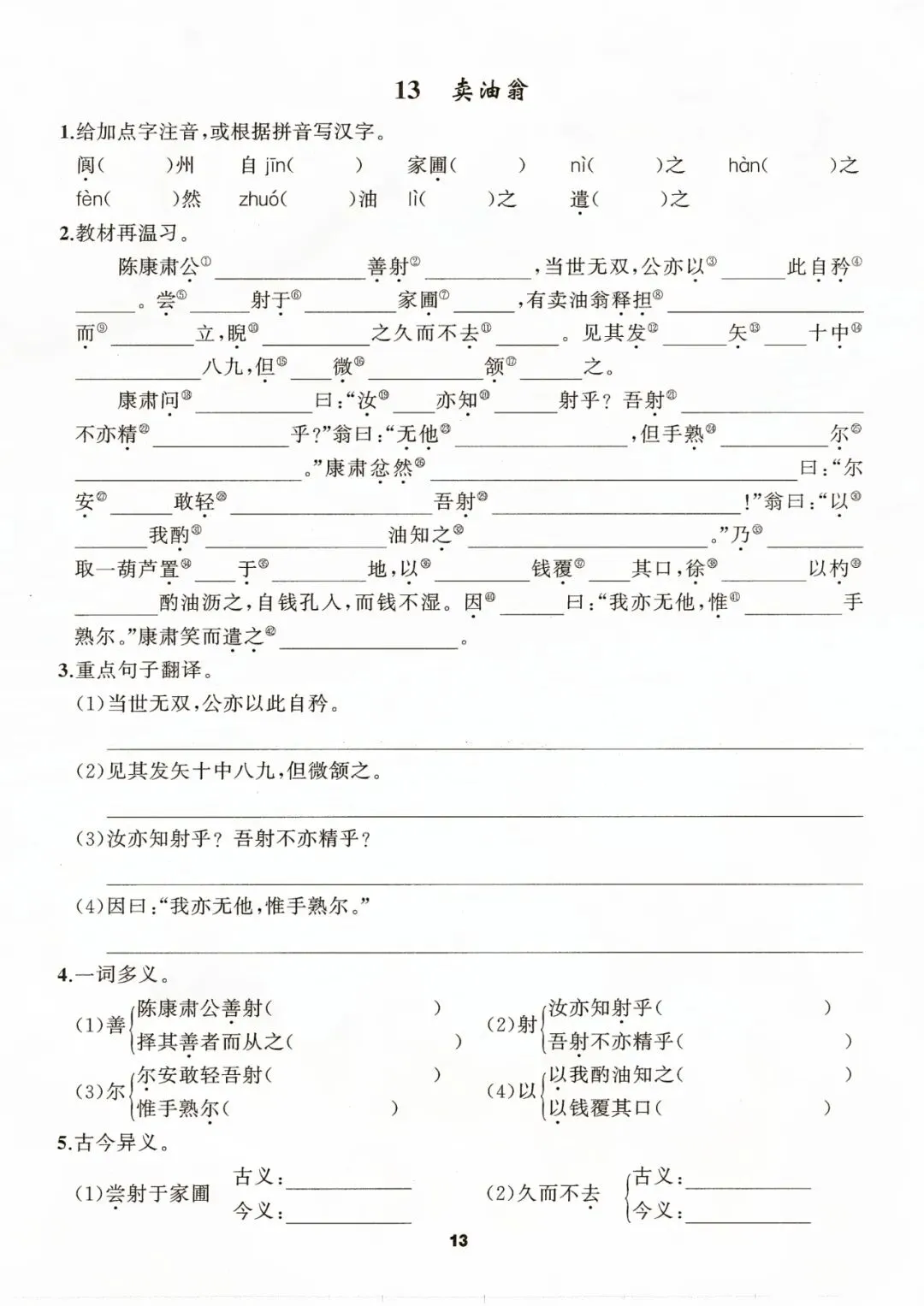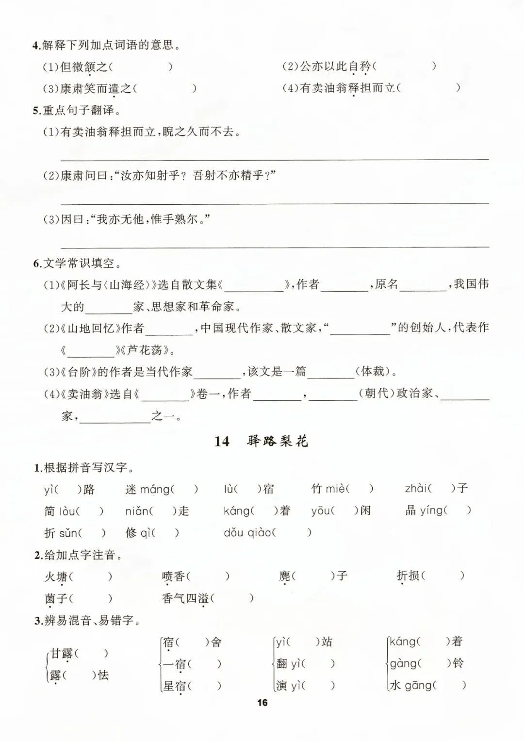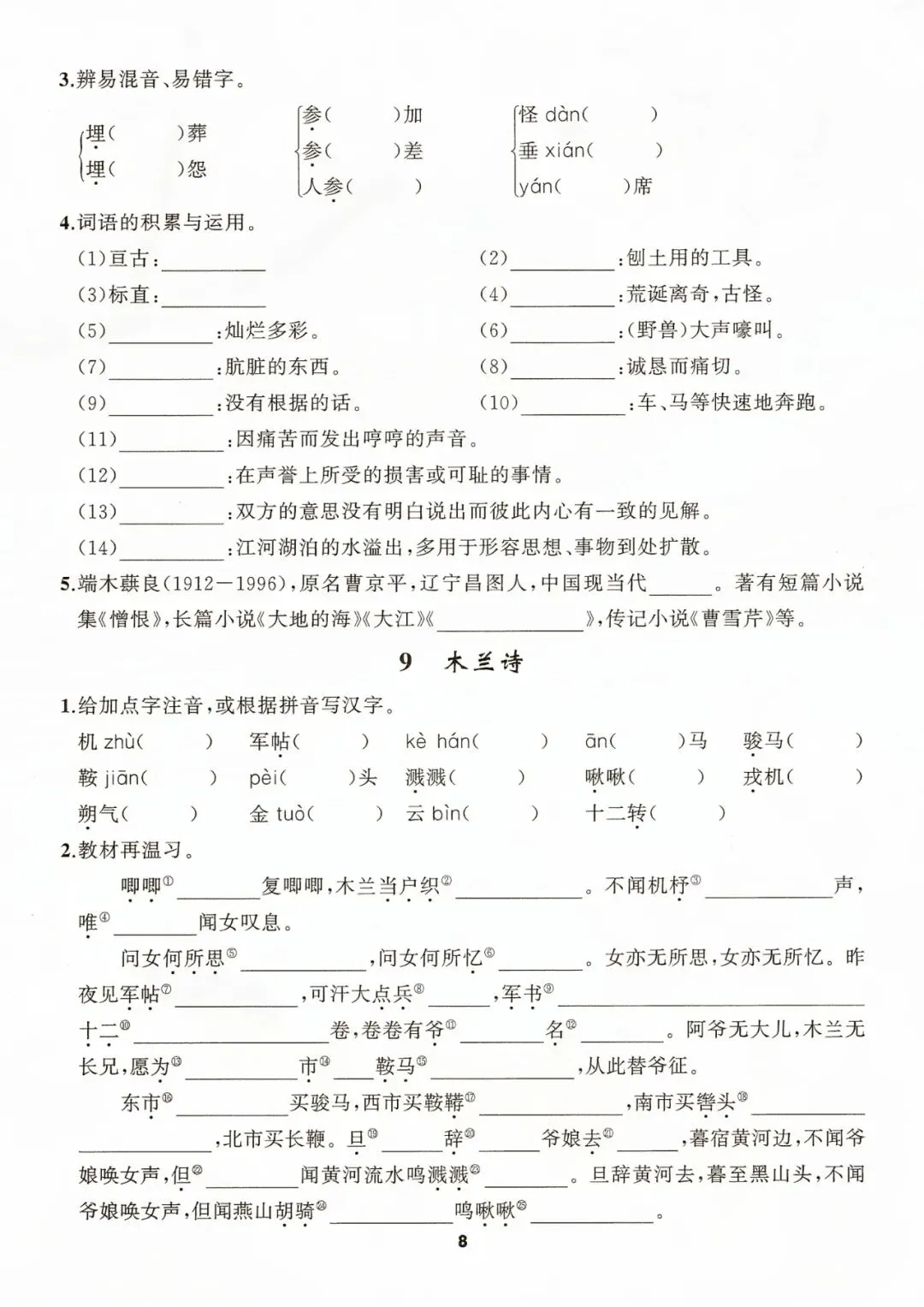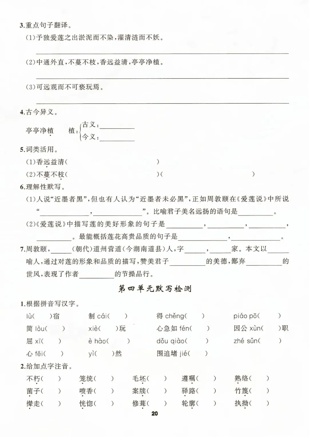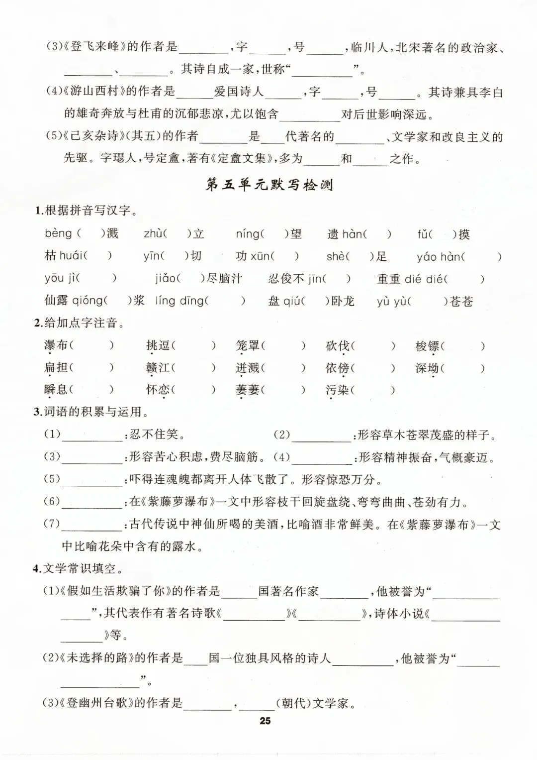 七年级下册语文默写手册 电子版可打印