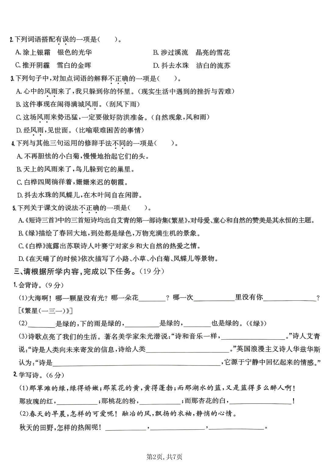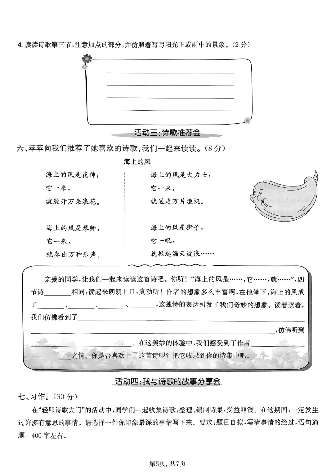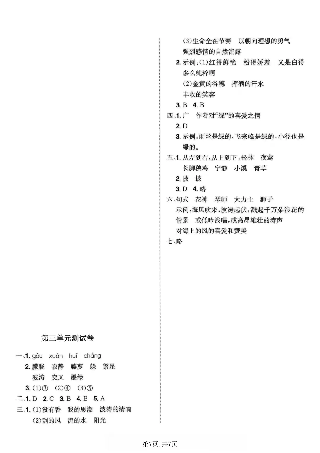2026年春人教部编版四年级下册语文《第三单元情景测试卷》(含答案),共6套,电子版可下载打印。需要的家长可以打印出来,让孩子练一练!
