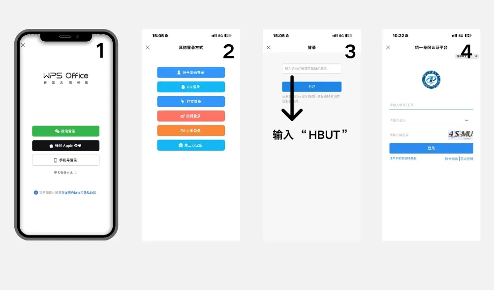 2. 输入“HBUT”,登录统一身份认证,验证身份信息即可。