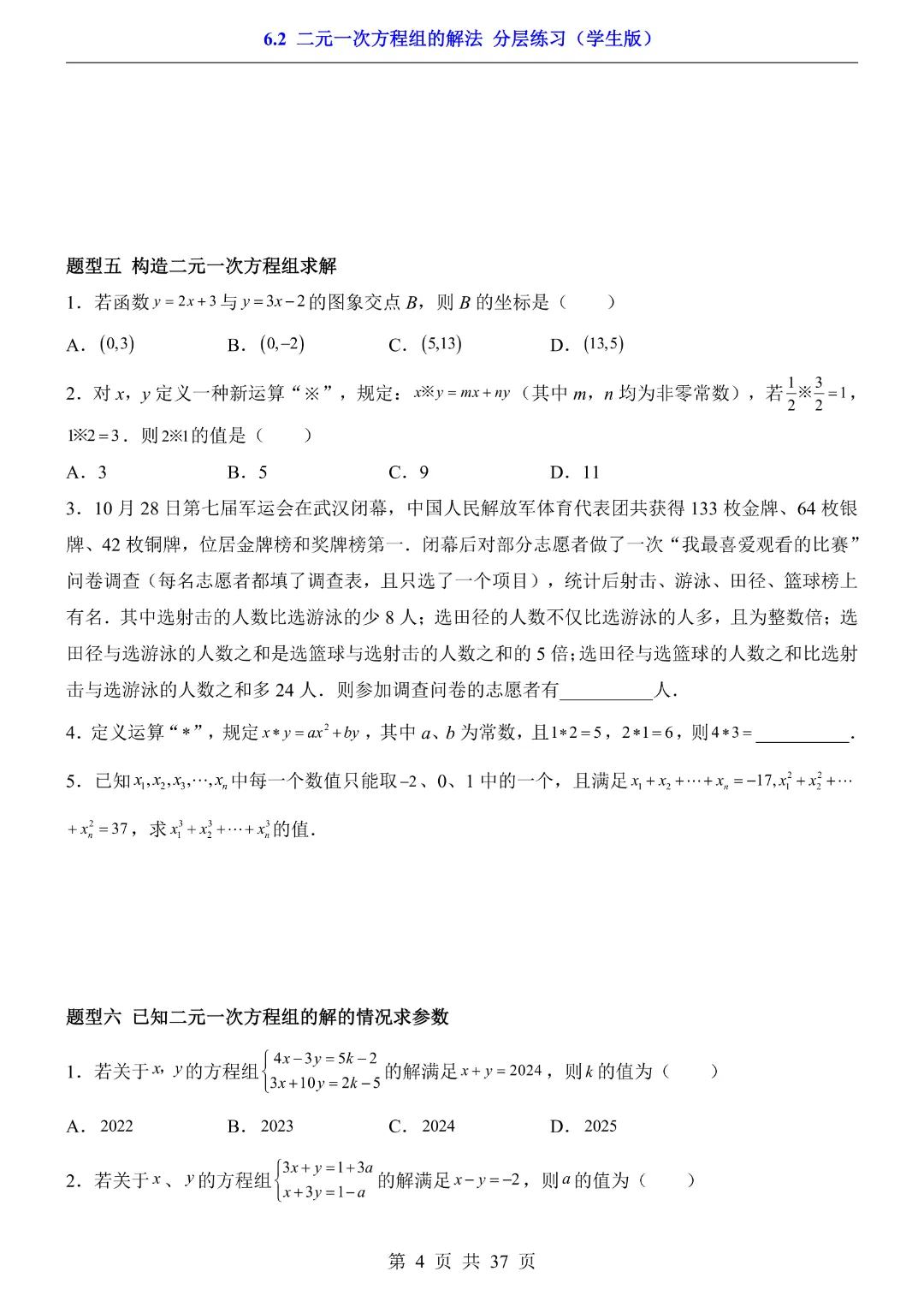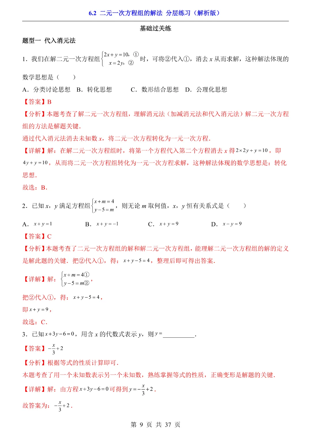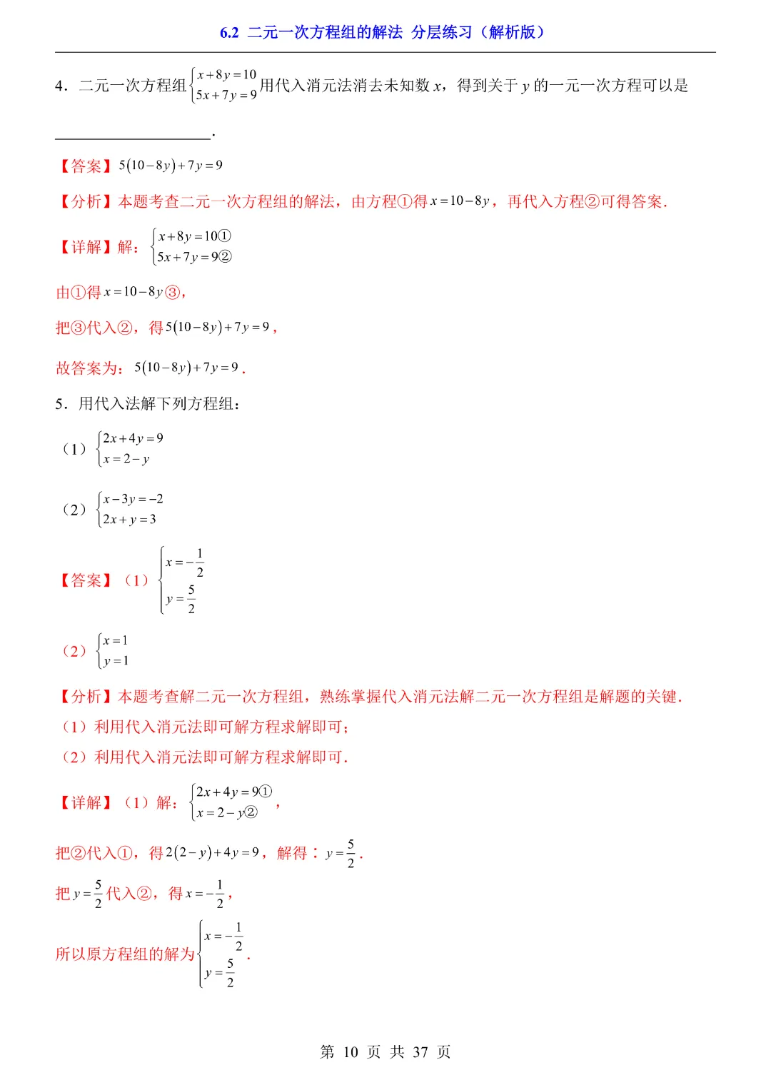 【七年级下册数学华师版】初一下册数学《6.2 二元一次方程组的解法 分层练习》带答案|完整高清可打印