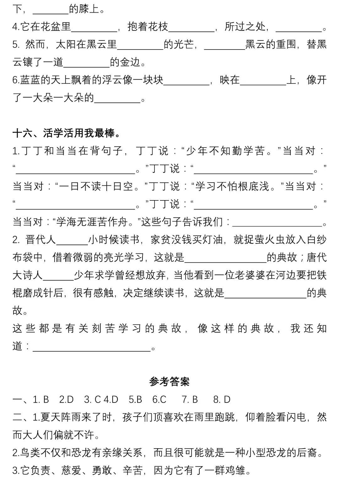 今天给大家分享的是:四年级下册语文【通用版】【句子专项训练及答案】丨完整高清电子版可打印