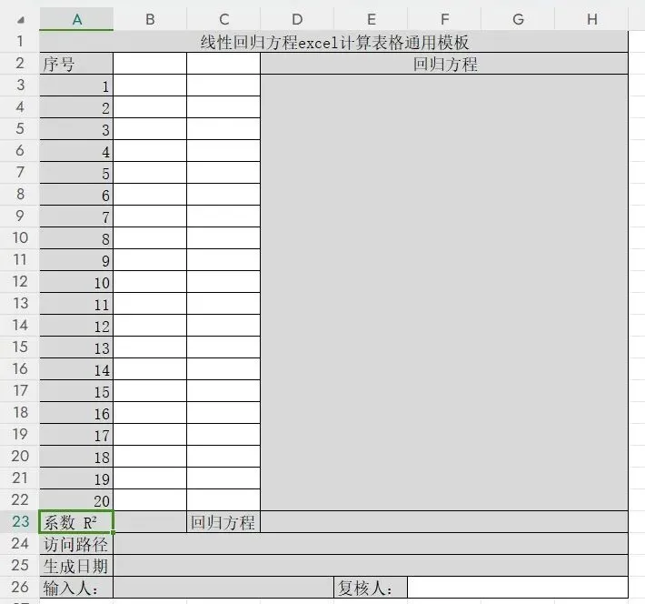 经统计,本次模板制作全过程中,我与豆包累计完成30 轮问答交互,通过不断调试、优化与完善,最终形成可用于下一步验证使用的《线性回归方程 Excel 计算表格通用模板》,成品效果如下。