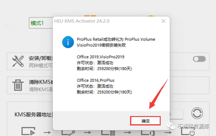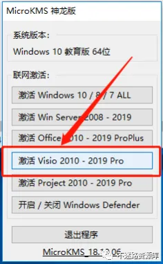 9.点击“激活 Visio 2010 ~ 2019 Pro”(若使用“HEU_KMS_Activator_v26.2.1.exe”工具,点击”KMS激活”,点击”激活Office”)