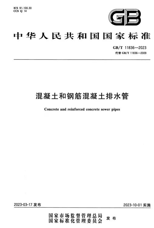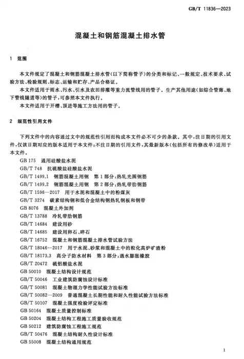 GB T 11836-2023 混凝土和钢筋混凝土排水管