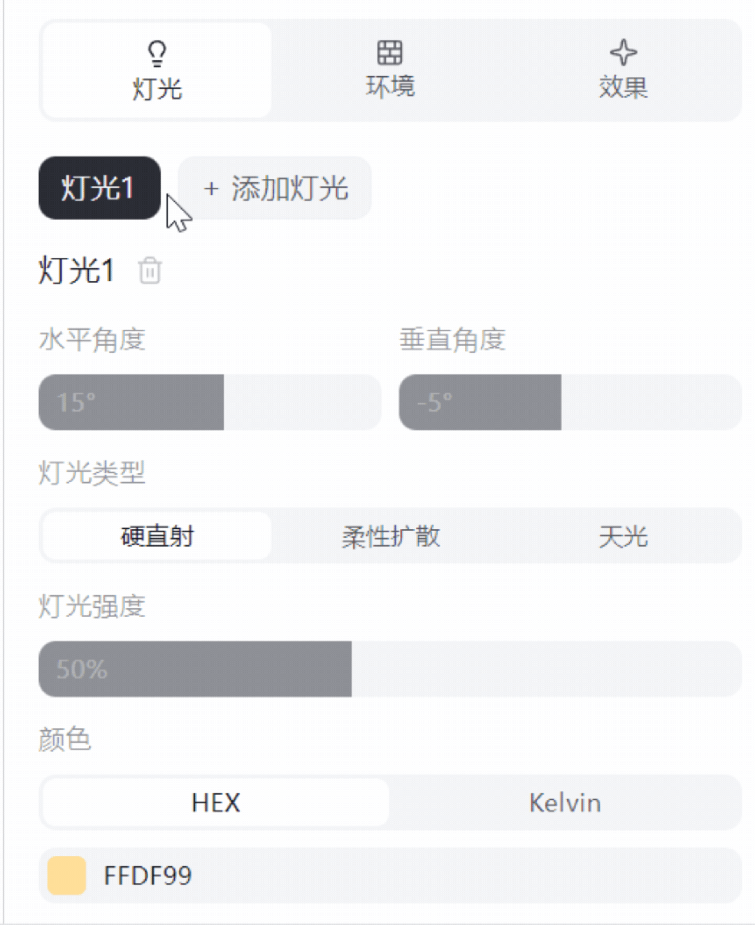 看看左侧,有一个可以选择的工作室,这好比是两个射灯,可以根据挪动球体的角度来控制灯光的角度。