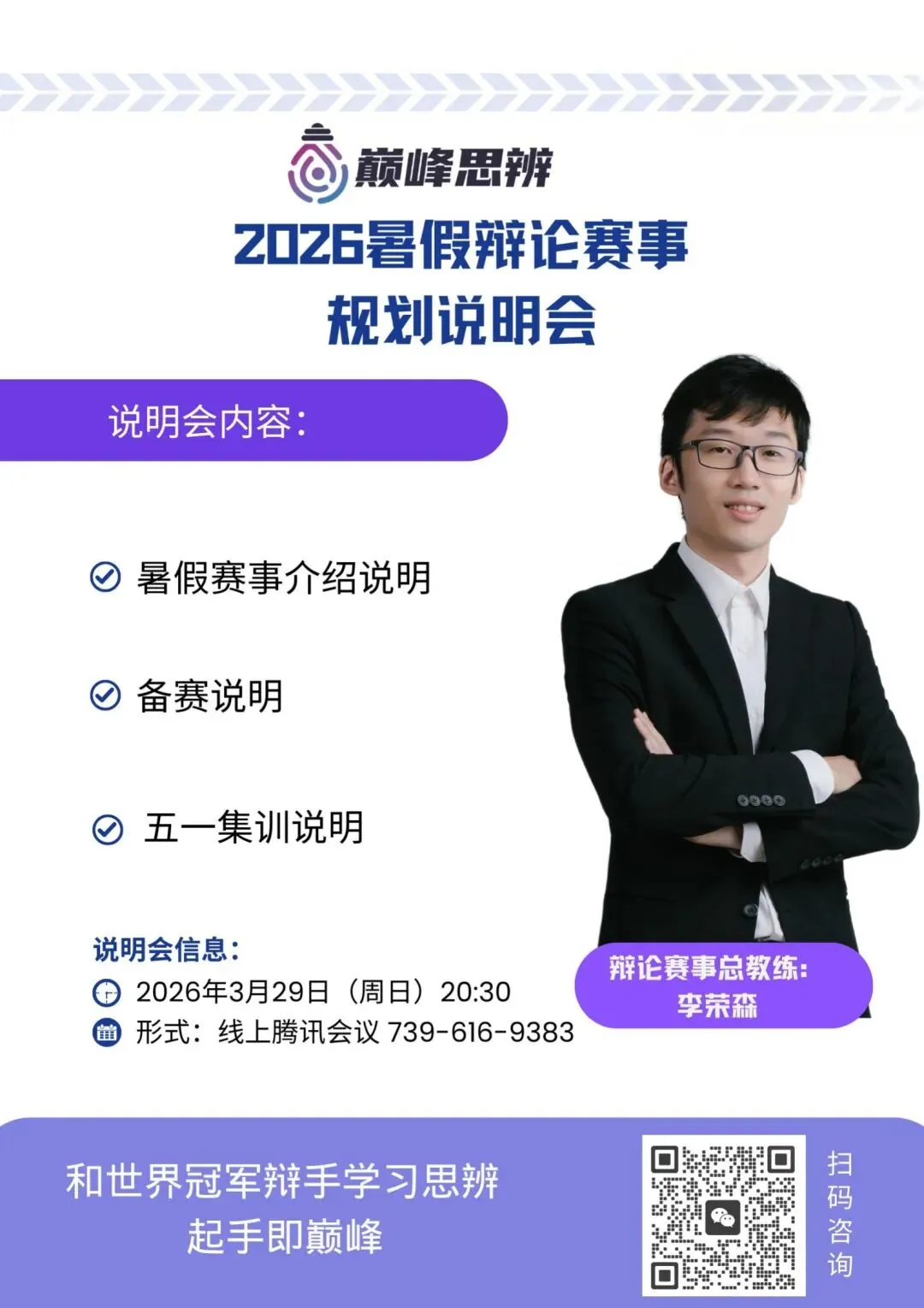 这些问题,看似只是“选一场比赛”,但背后真正关系到的,其实是——孩子今年暑假的成长路径,该如何规划。也正因为如此,巅峰思辨特别准备了一场:2026暑期国际辩论赛事规划说明会