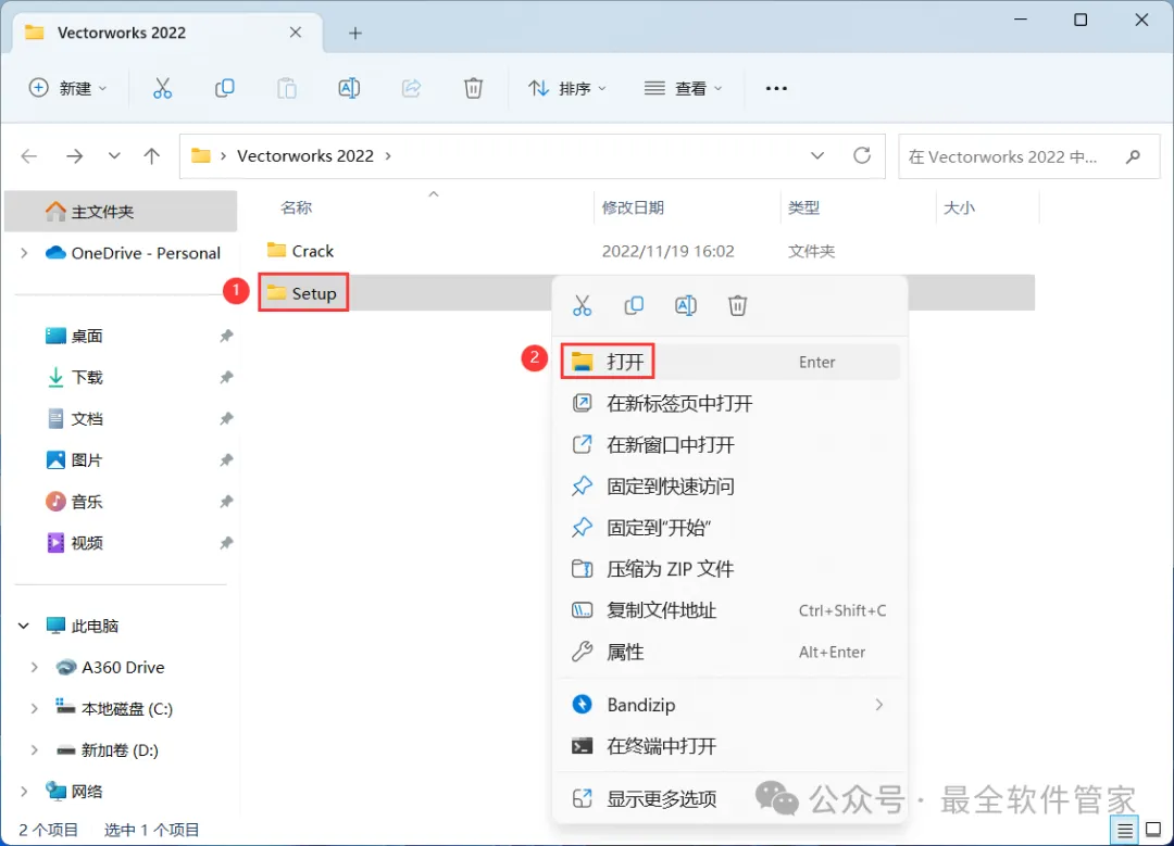 12、回到Vectorworks 2022文件夹,找到【Crack】文件夹,右键【打开】它