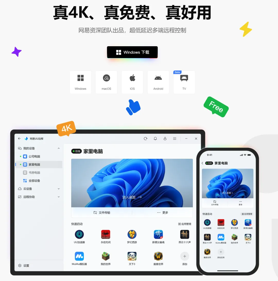 2️⃣ 全: 支持电脑控电脑、手机控电脑,随时随地。