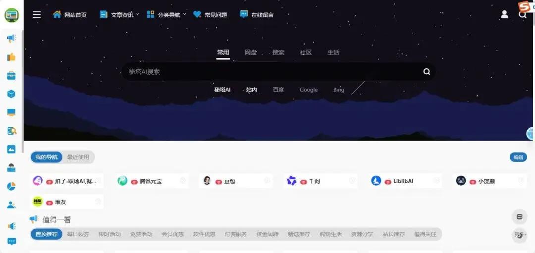 全能型的维度导航(www.weidus.com)。从AI工具到生活服务都能找到。界面非常清爽,没有广告干扰