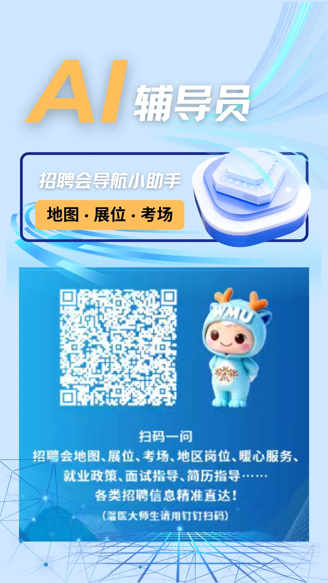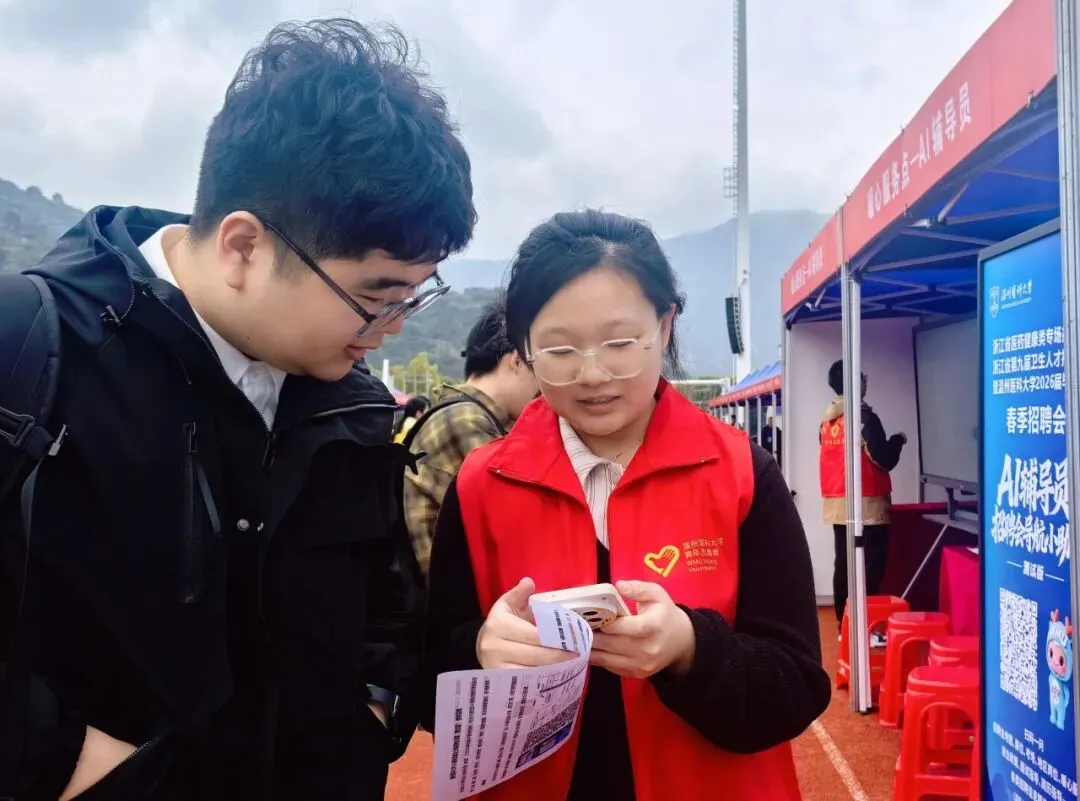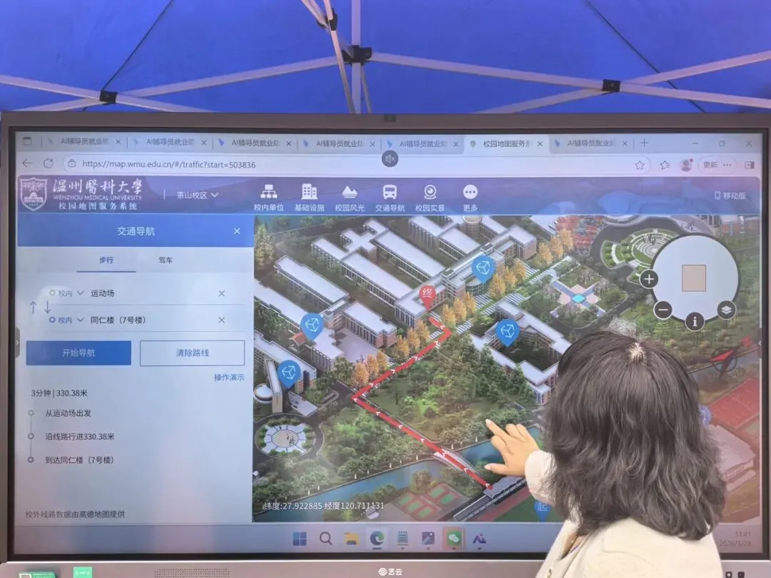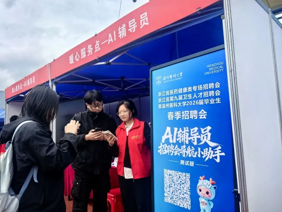 温州医科大学学生处推出 AI 辅导员就业分身招聘会导航(测试版),在 2026 年春季招聘会中为毕业生提供智能导航服务。毕业生可通过语音或文字与 AI 辅导员智能问答,快速获取展位分布、考场安排、周边打印点、招聘会全景地图及就业政策等信息,系统可智能推荐适配求职单位并精准导航至目标展位,高效解决找单位、找展位、找服务等难题,实现信息精准触达,全面提升春招服务效率与求职体验。