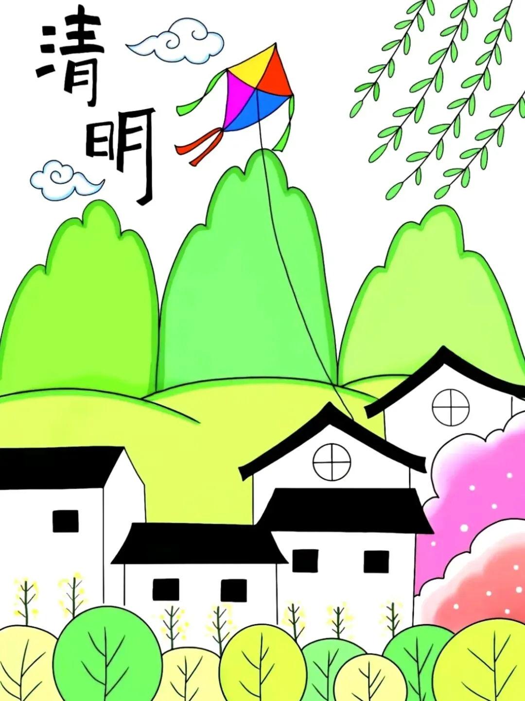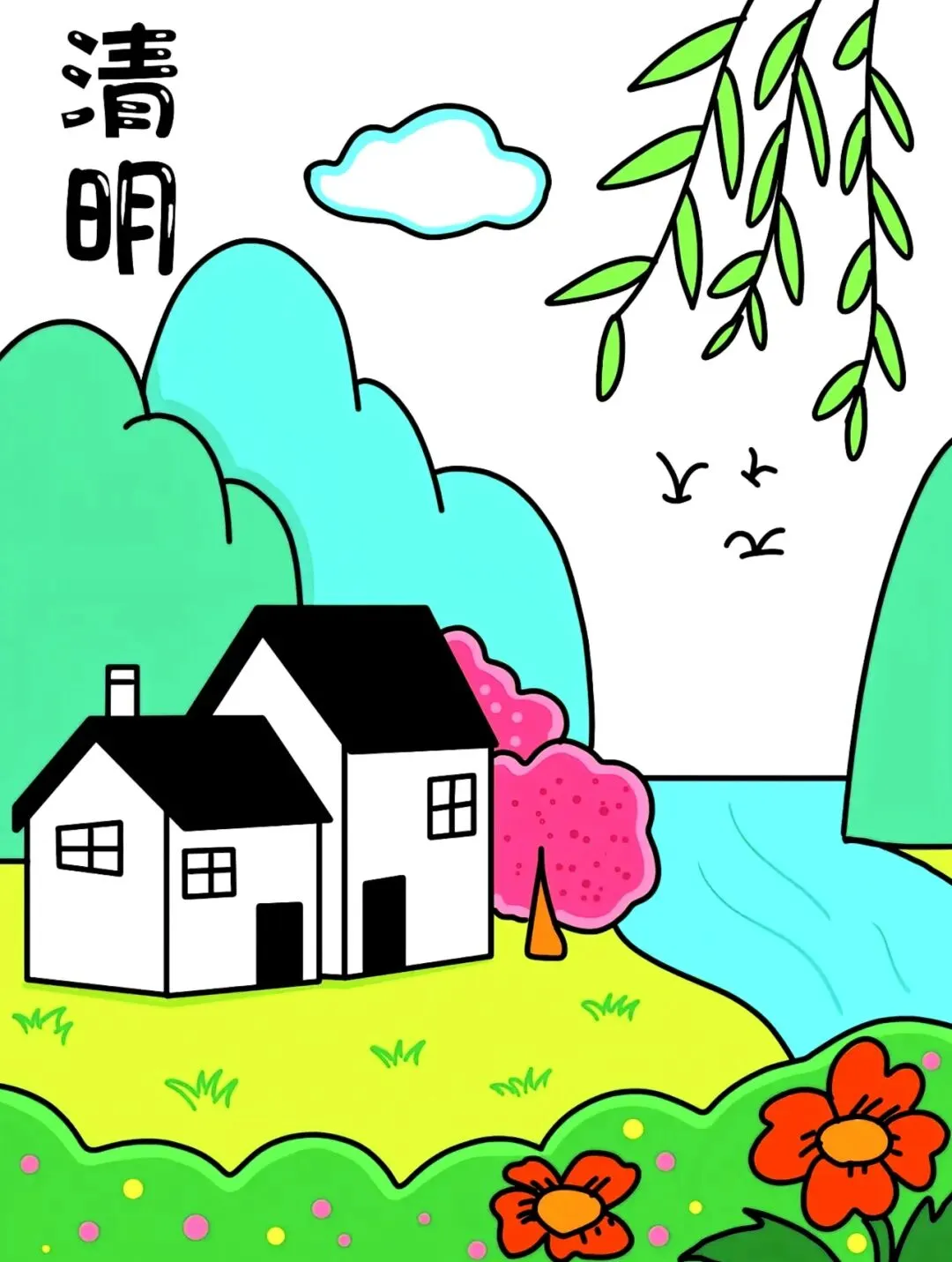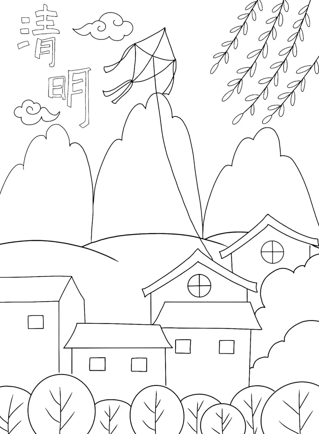 清明主题画|可打印素材+涂色参考图
