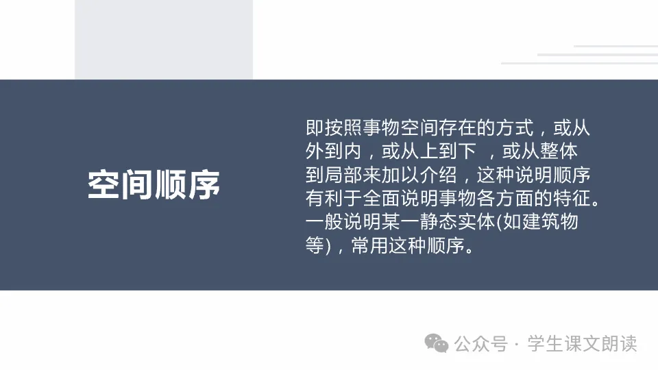 名师点评:这是一篇建筑物类的说明文,采用的就是典型的空间顺序。从外到内,从总体到书房局部,介绍详细,亲切而清晰,流露出自己对书房的喜爱。而且文章首尾呼应,结构比较严谨,叙述条理清楚,实为佳作。