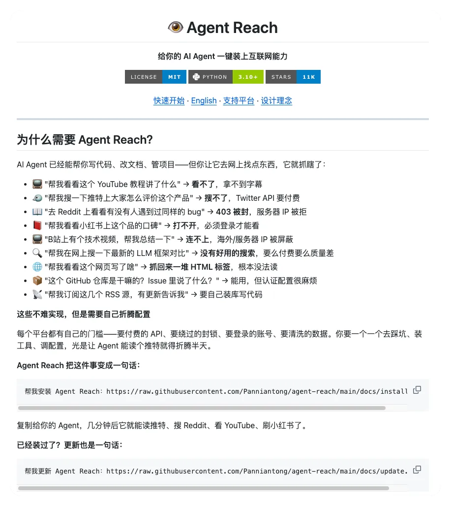 下载地址 📥:pip install agent-reach