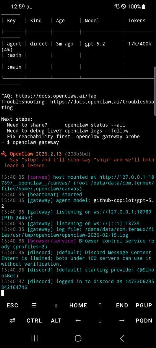 Step 4 启动网关(⚠️必须在Termux本机运行,不可SSH)