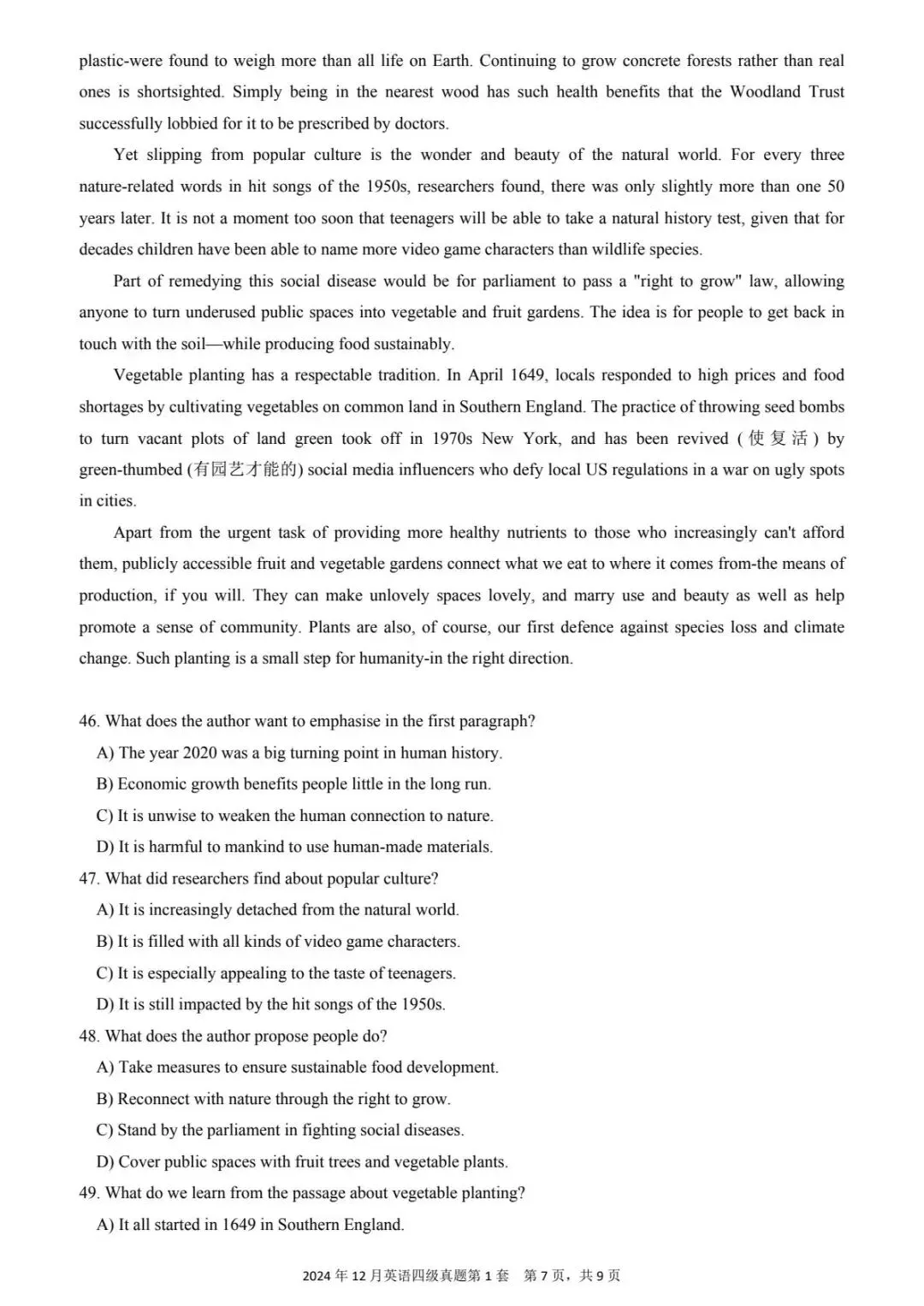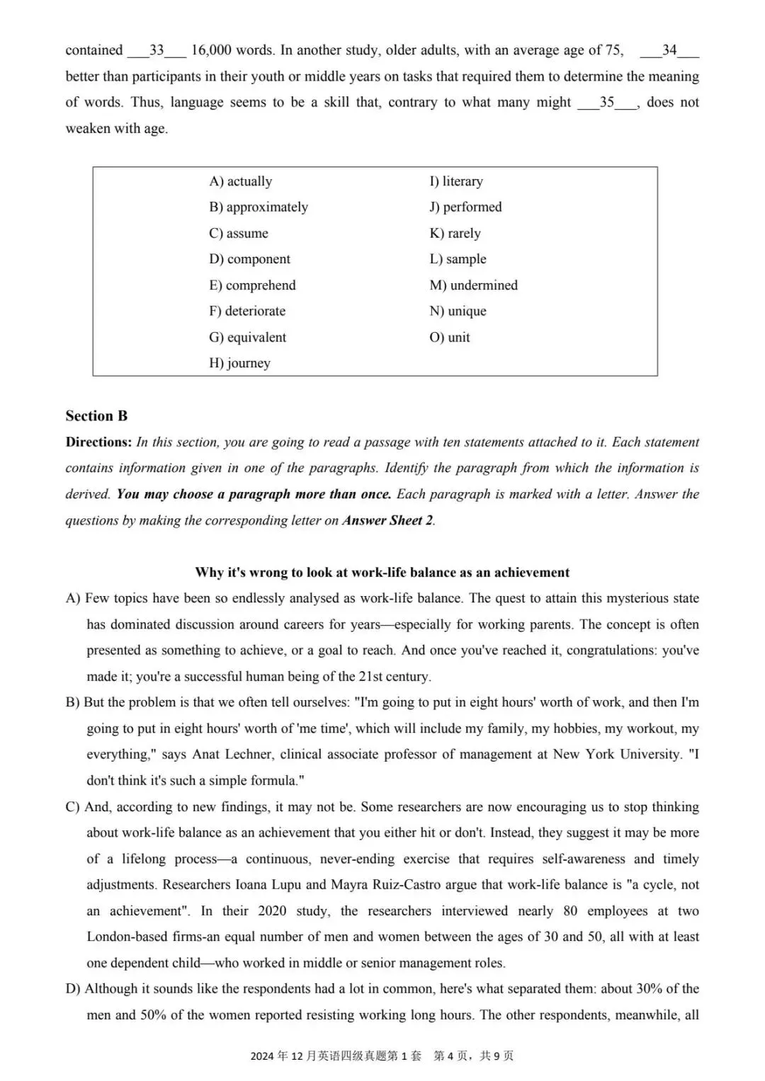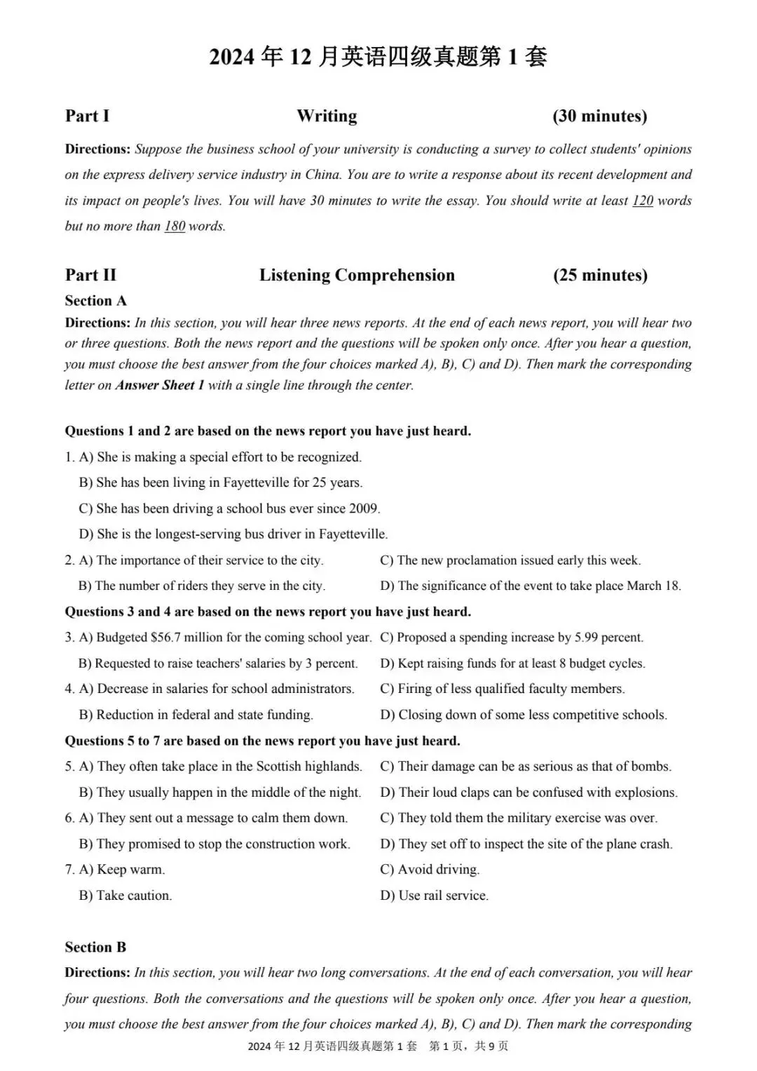 2024年 12月第一套(后附电子版)