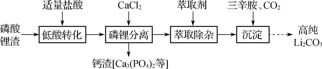 “低酸转化”使Li3PO4转化为Li2HPO4。写出“磷锂分离”的化学方程式:2Li2HPO4+3CaCl2===Ca3(PO4)2↓+4LiCl+2HCl。