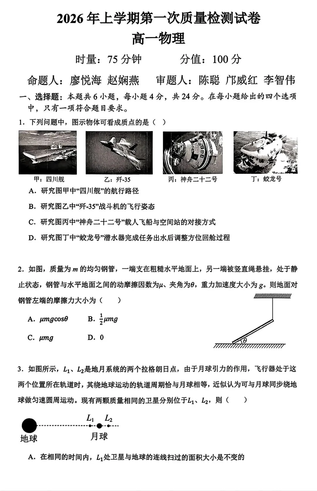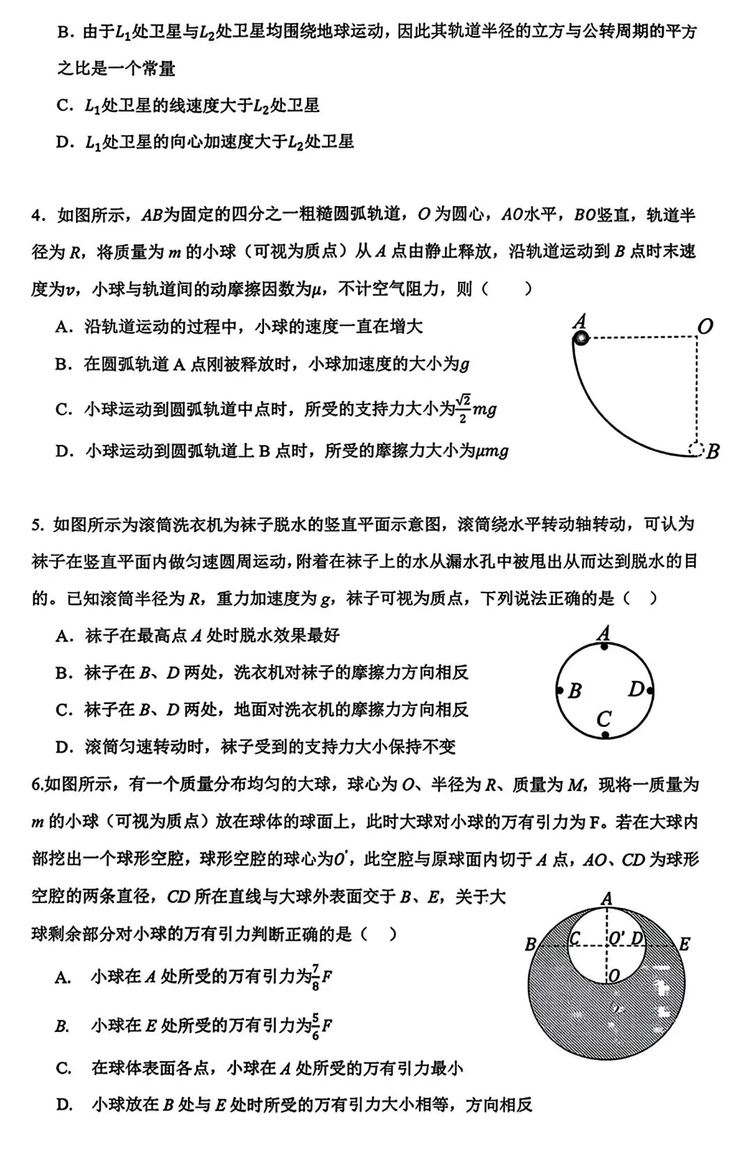 湖南雅礼中学2025-2026学年高一下学期3月阶段检测物理.pdf