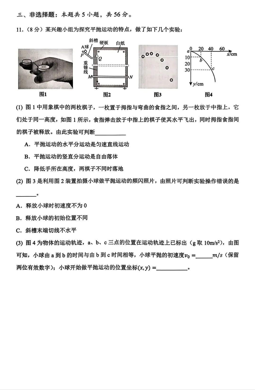 【文末可下载】湖南雅礼中学2025-2026学年高一下学期3月阶段检测物理