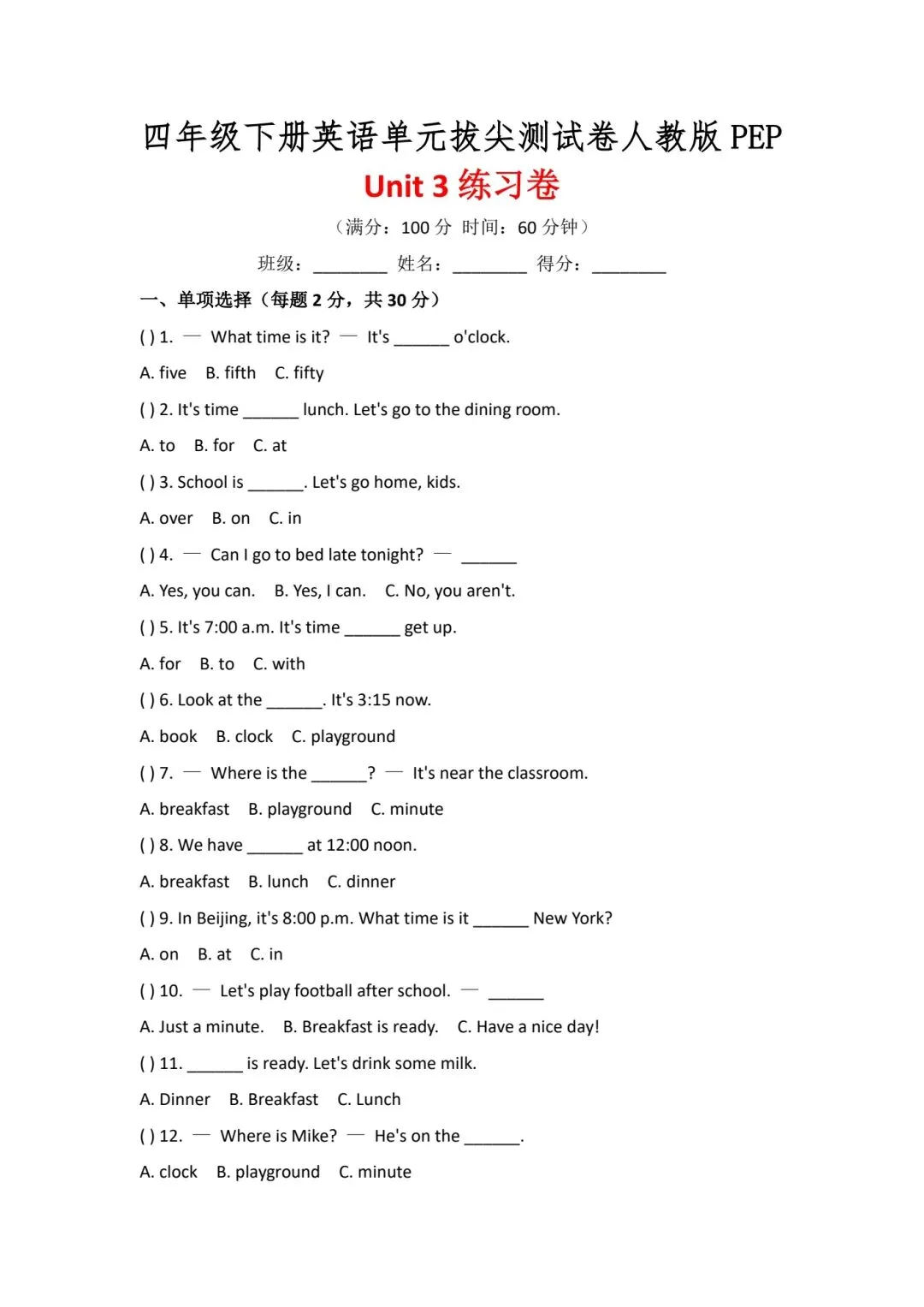 2026春四年级下册人教PEP版英语,第三单元检测试卷3套,有听力音频,含答案,电子版可下载打印。这三套卷子针对四年级下册第三单元知识点,含质量卷、拔尖卷,帮助孩子及时检查学习效果,了解哪些掌握了哪些是薄弱点,查漏补缺再针对性巩固提高,需要的朋友抓紧领取,让孩子用起来吧💪!小伙伴赶紧分享给班级群或者家长群,免得回头找不到哦!