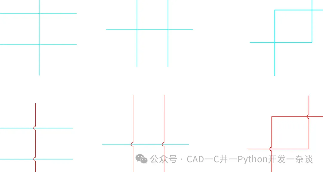 6,延长直线、多段线,两两相交,1,选择所有直线;2,将同一朝向的归类分组