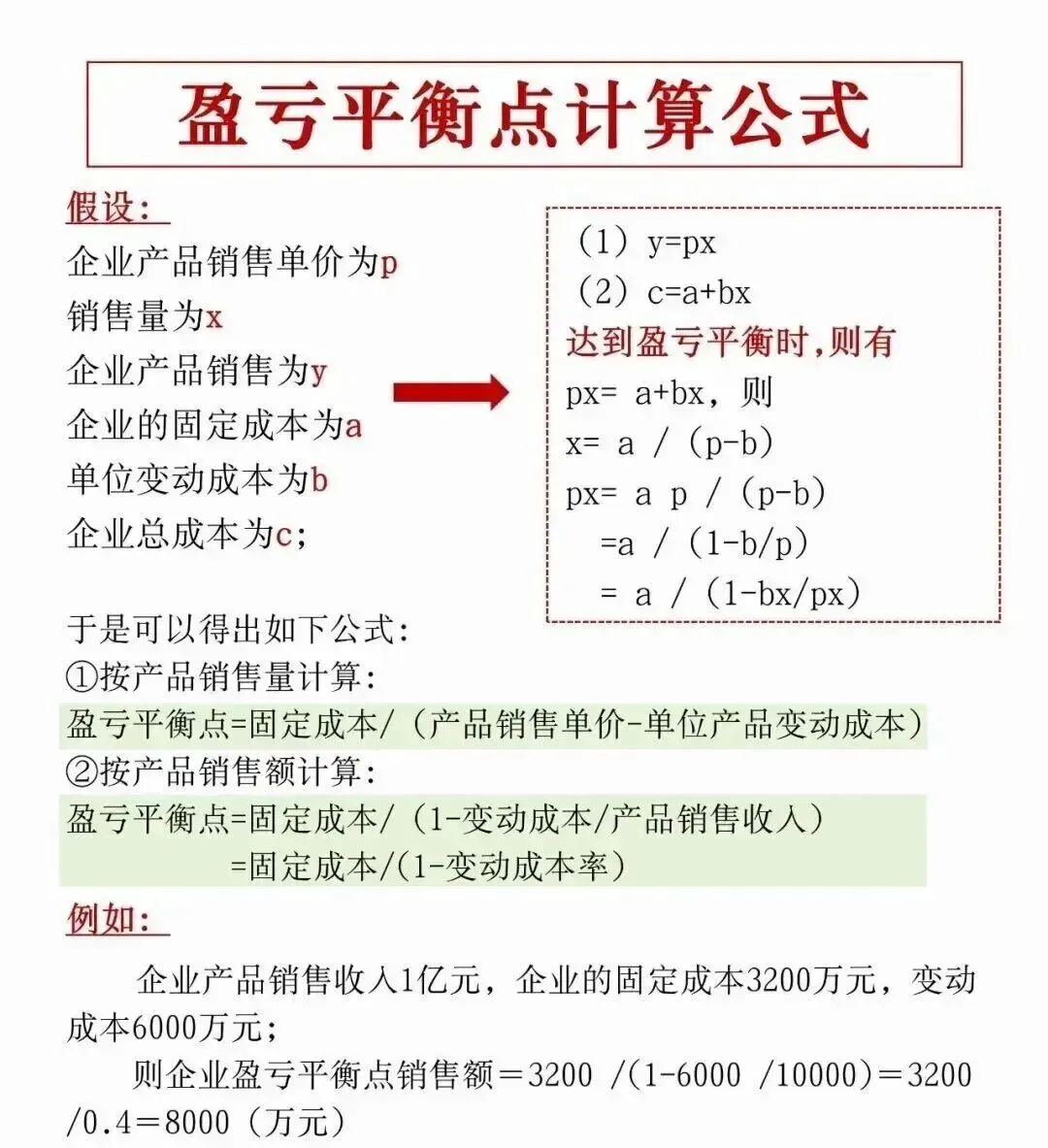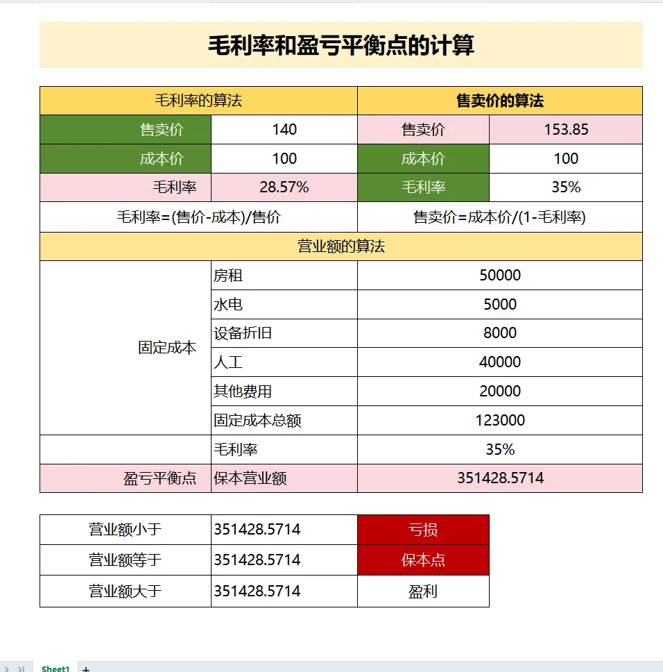 盈亏平衡点计算公式与计算案例