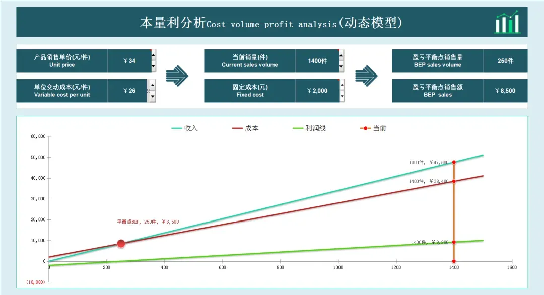 盈亏平衡分析表怎么做?全自动Excel盈亏平衡分析报表模板与盈亏平衡点计算表,带公式,财务一键套用即可!