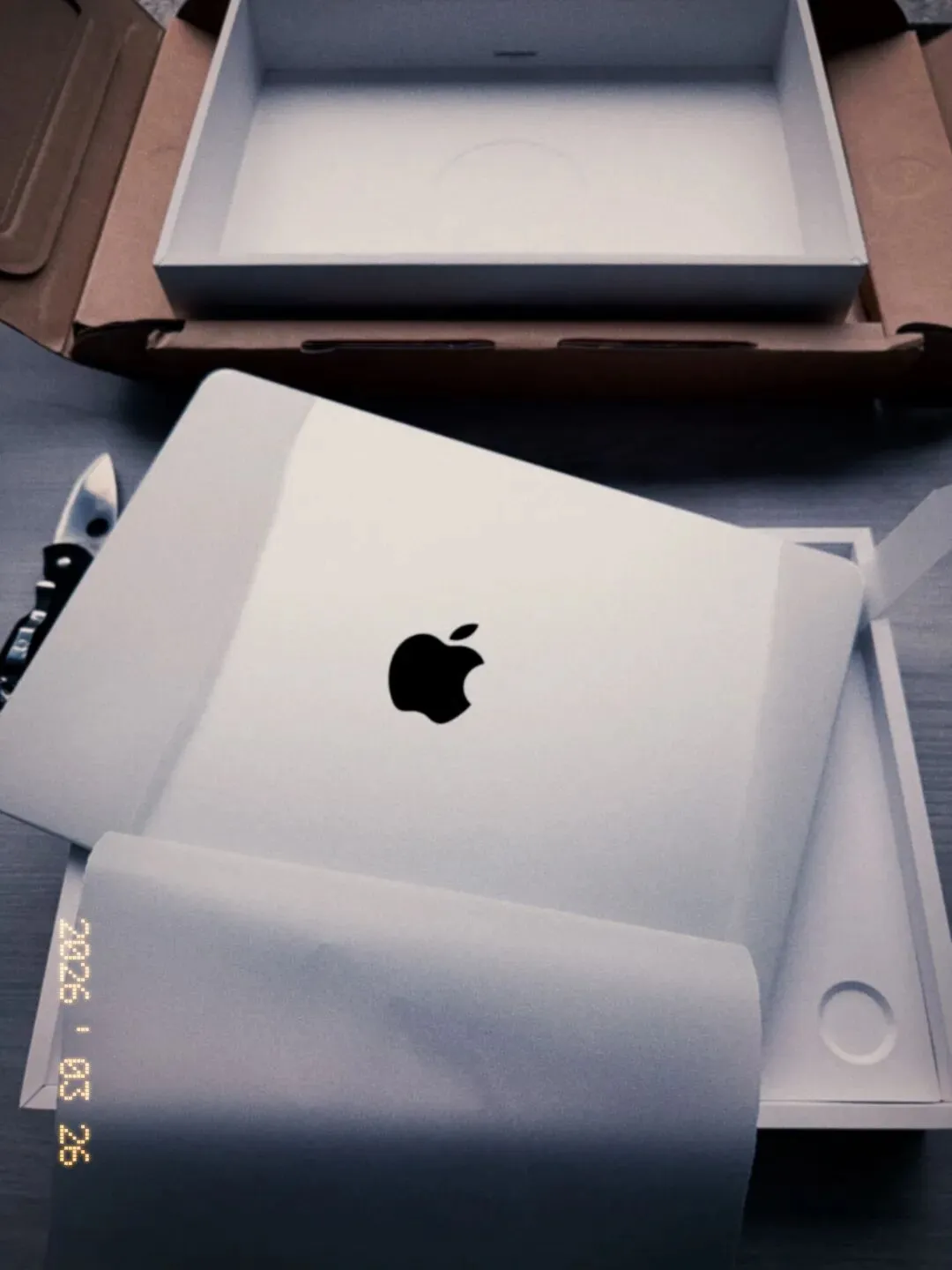 一台崭新的 M5 MacBook Air 轻轻合上盖子,又缓缓打开。
