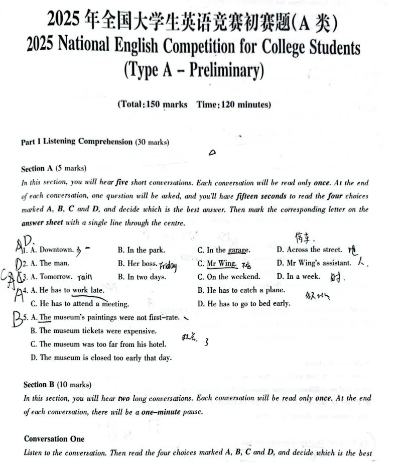 2023年大英赛A类真题+音频+解析