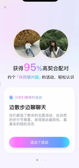 活动推荐:根据双方偏好智能匹配,如:散步、艺术展、咖啡奶茶等活动;