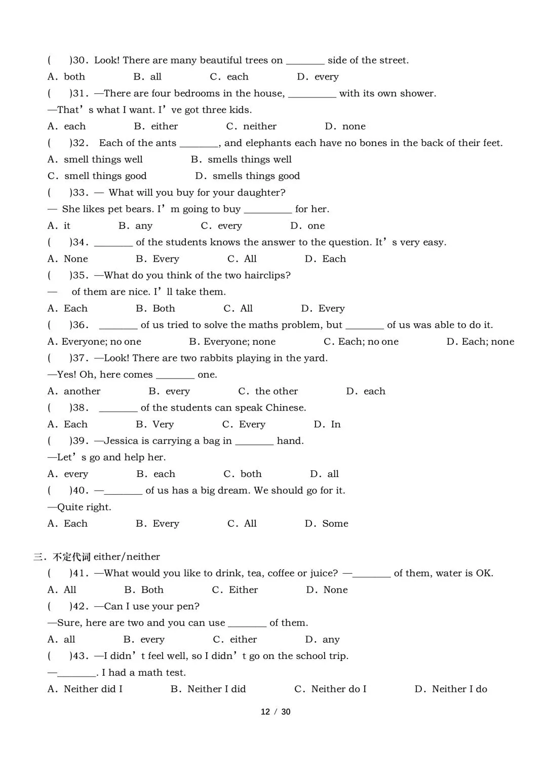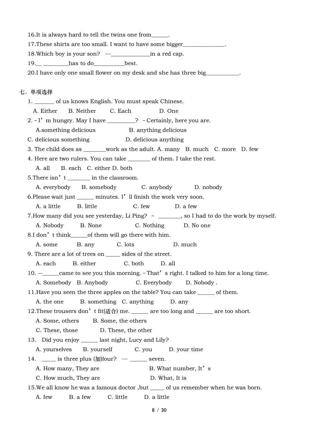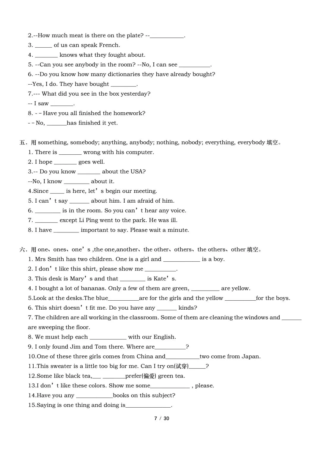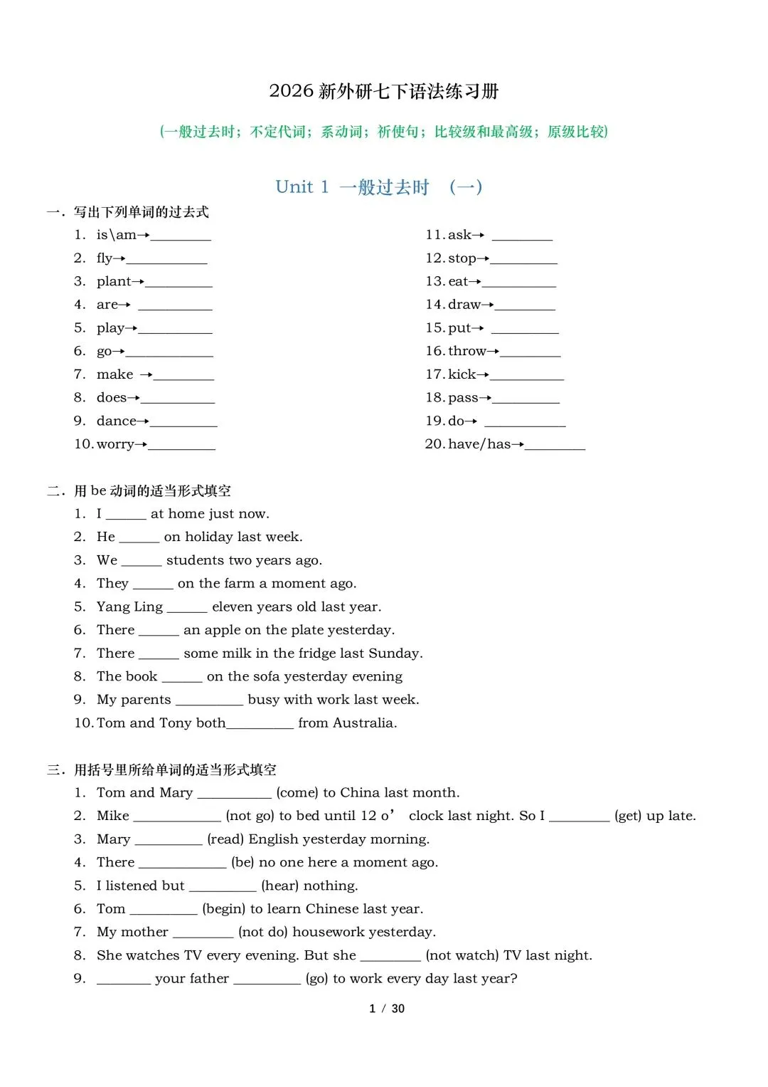 2026年春新外研版英语七年级下册英语语法专项训练(含答案)完整电子版可打印。
