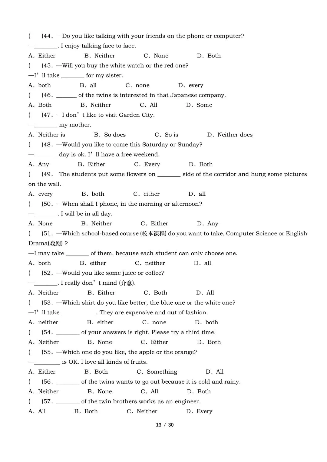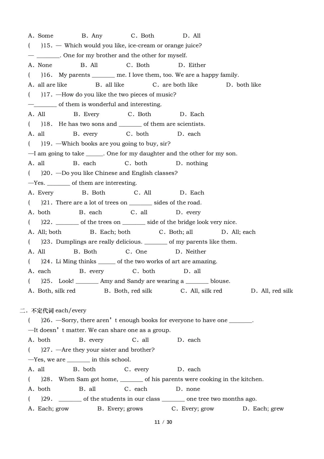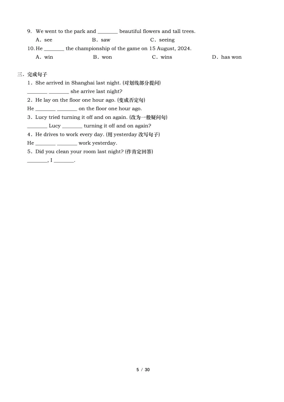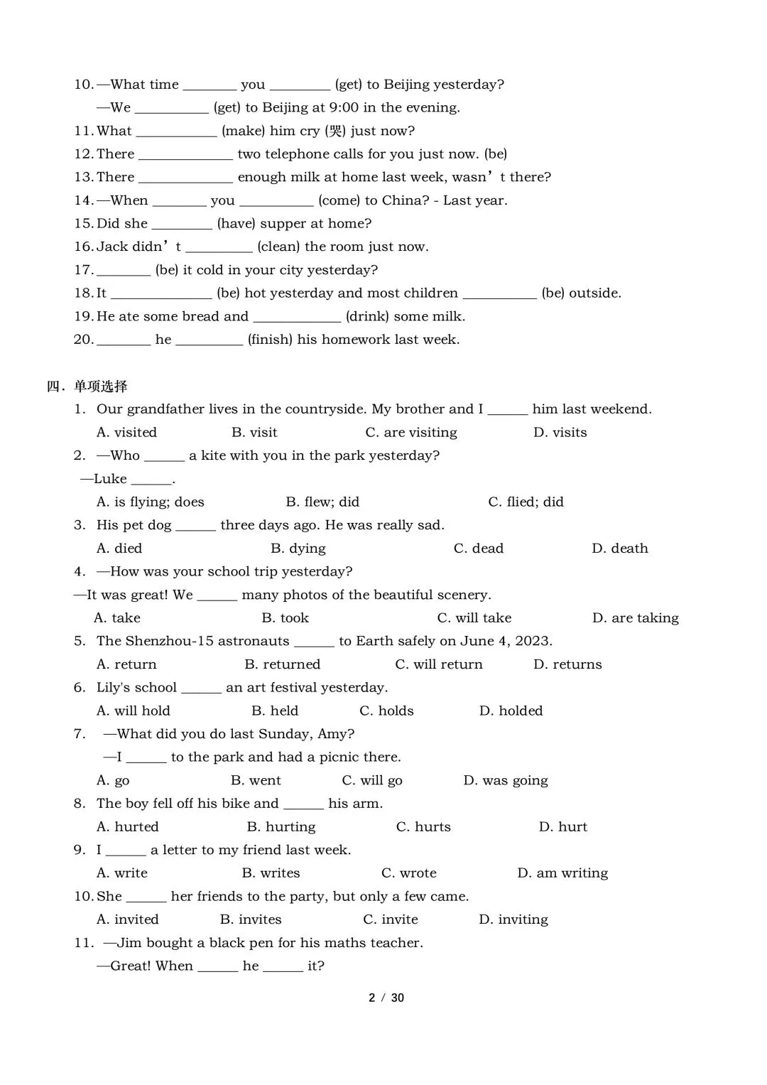 2026年春新外研版英语七年级下册英语语法专项训练(含答案)完整电子版可打印。